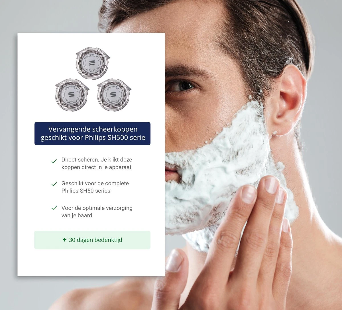 Deze set van 3 scheerkoppen vervangen de mesjes voor de SH50 5000 serie. Voor een glad en optimaal scheerresultaat zijn scherpe mesjes een must. Wij raden aan de mesjes minimaal eens per jaar te vervangen. Op deze manier voorkom je botte mesjes, wondjes en heb je altijd het gewenste resultaat.