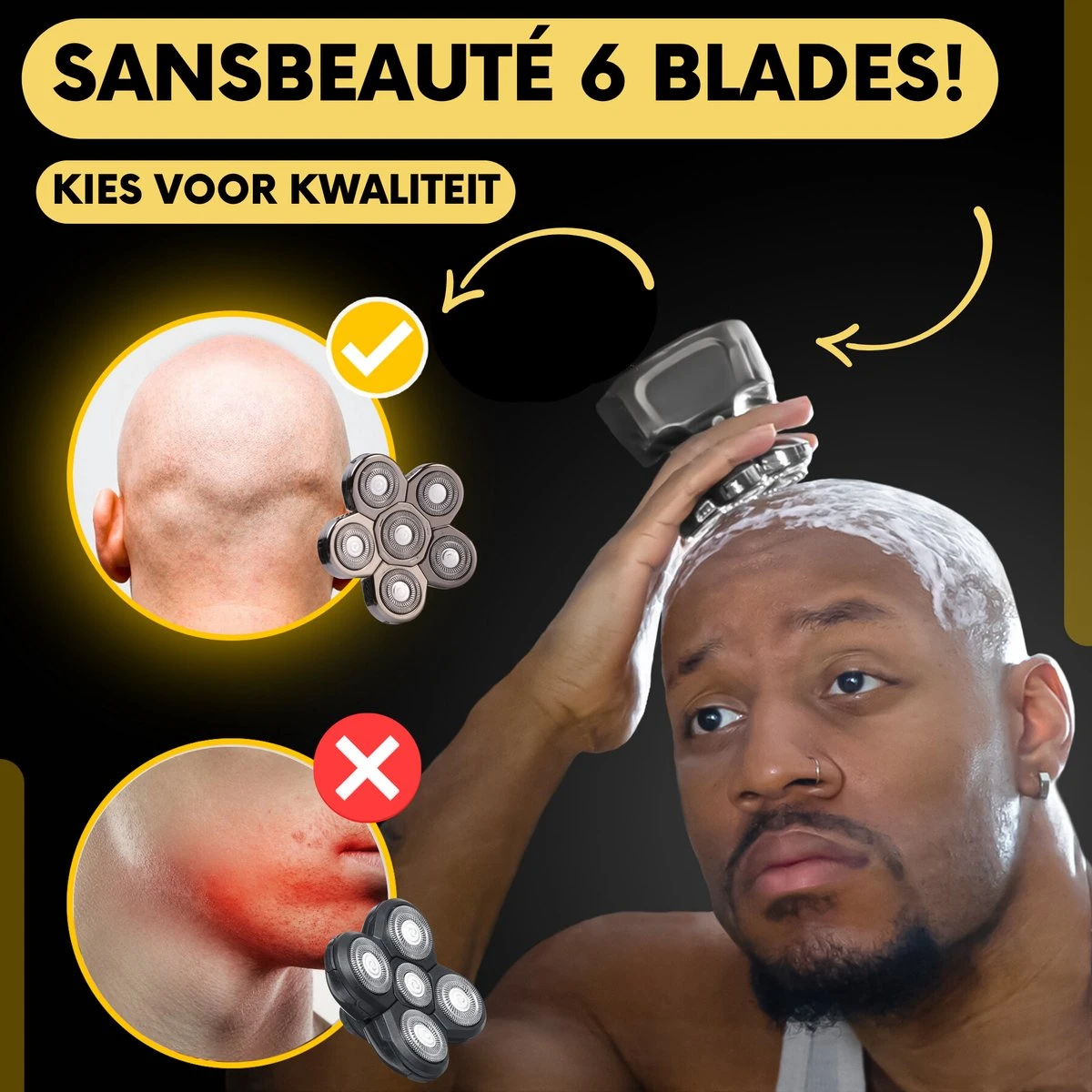 ✓ Groter scheeroppervlak – Met 6 (!) ronde scheerkoppen bereikt het scheerapparaat van Sansbeauté® een groter scheeroppervlak zodat er meerdere haartjes tegelijk worden meegepakt. Zes flexibele 4D scheerbladen bewegen vloeiend over je kin, schedel en wangen; het kan bijna niet makkelijker!