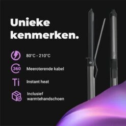 - Inhoud verpakking: krultang, warmte handschoen, handleiding