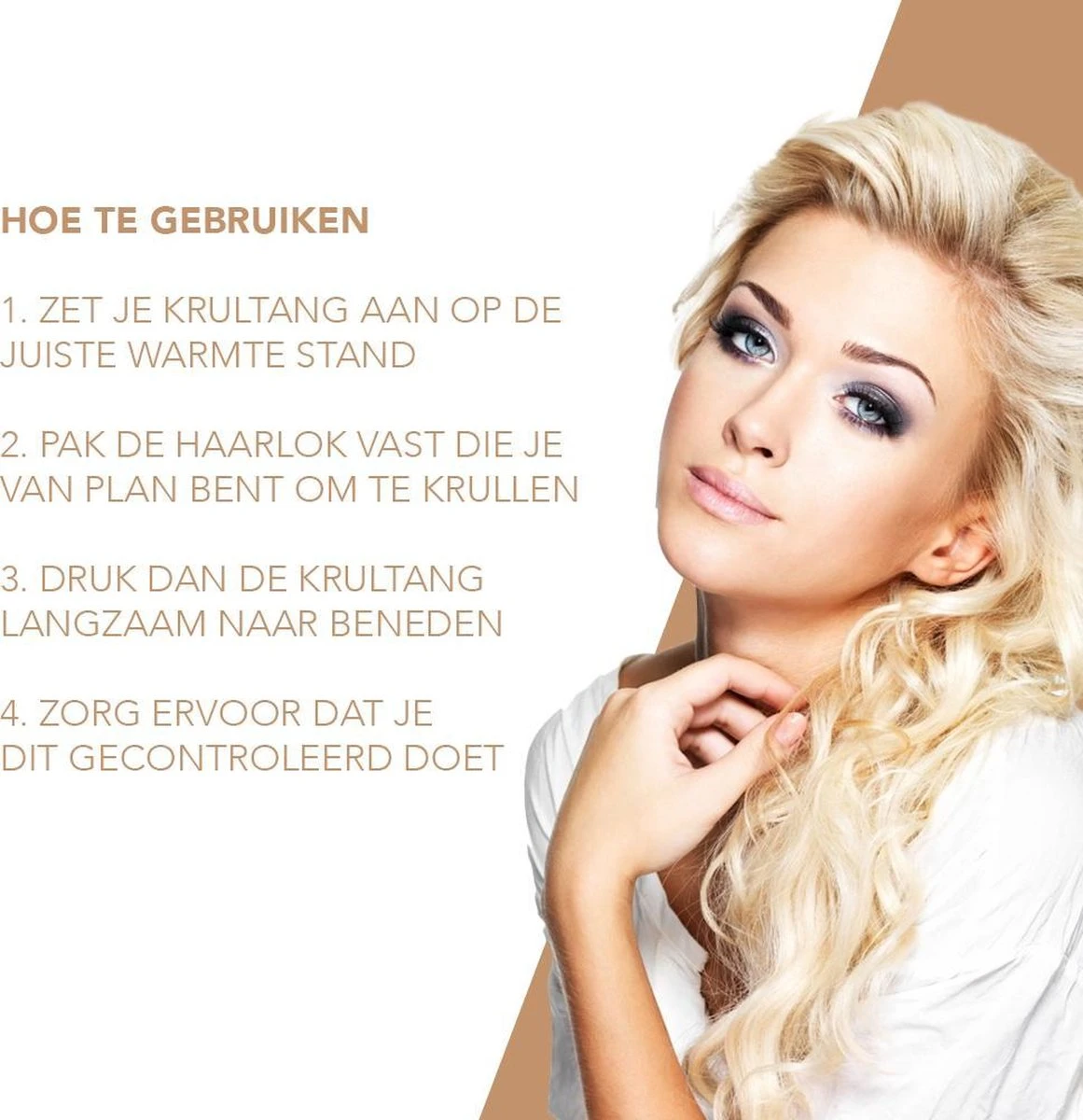 De Achaté krultang wordt met een professionele handschoen geleverd. Deze handschoen is hittebestendig, waardoor de stof je beschermt tegen de hitte van de krultang. Hierdoor is het gemakkelijk om zonder zorgen alle bewegingen te maken die nodig zijn voor de gewenste waves.