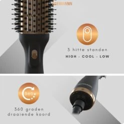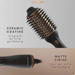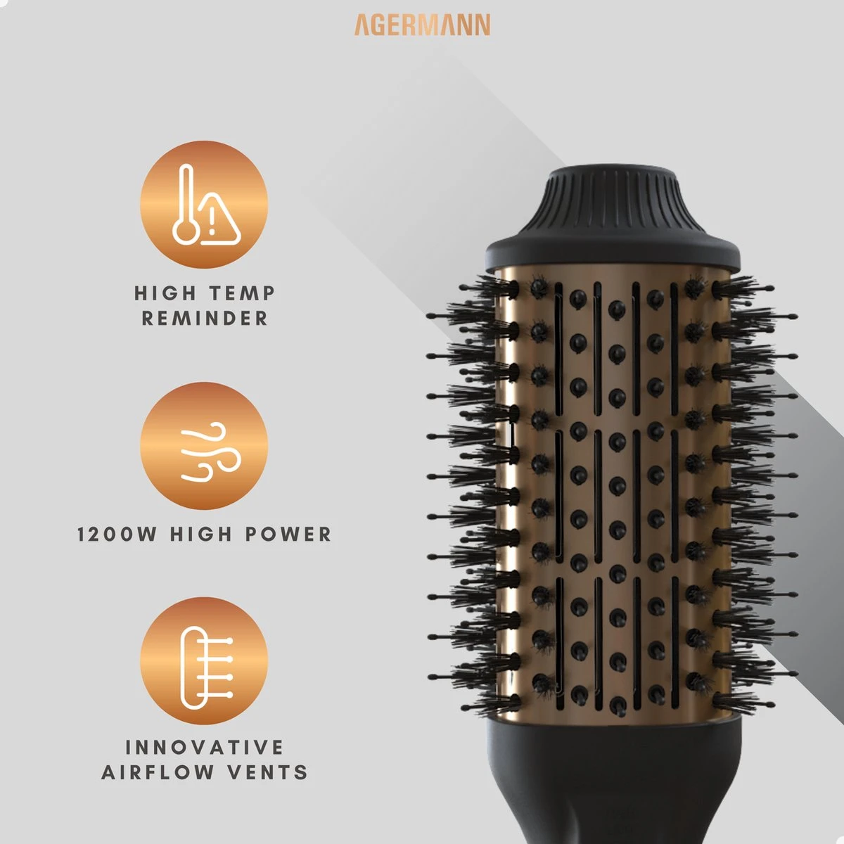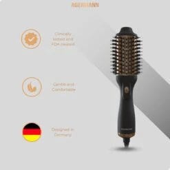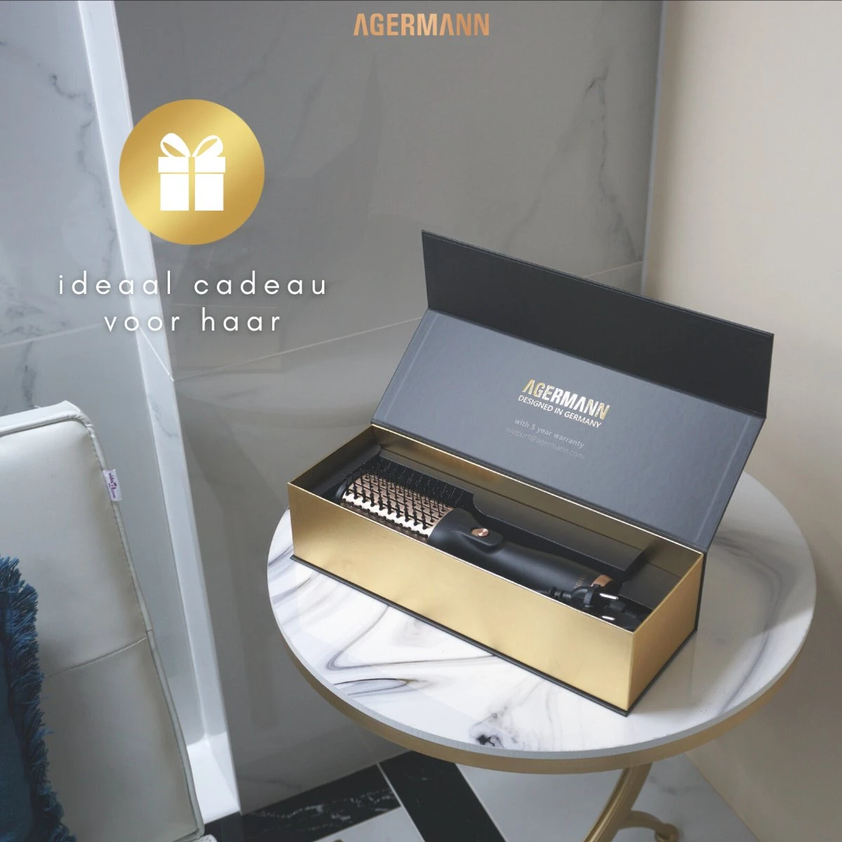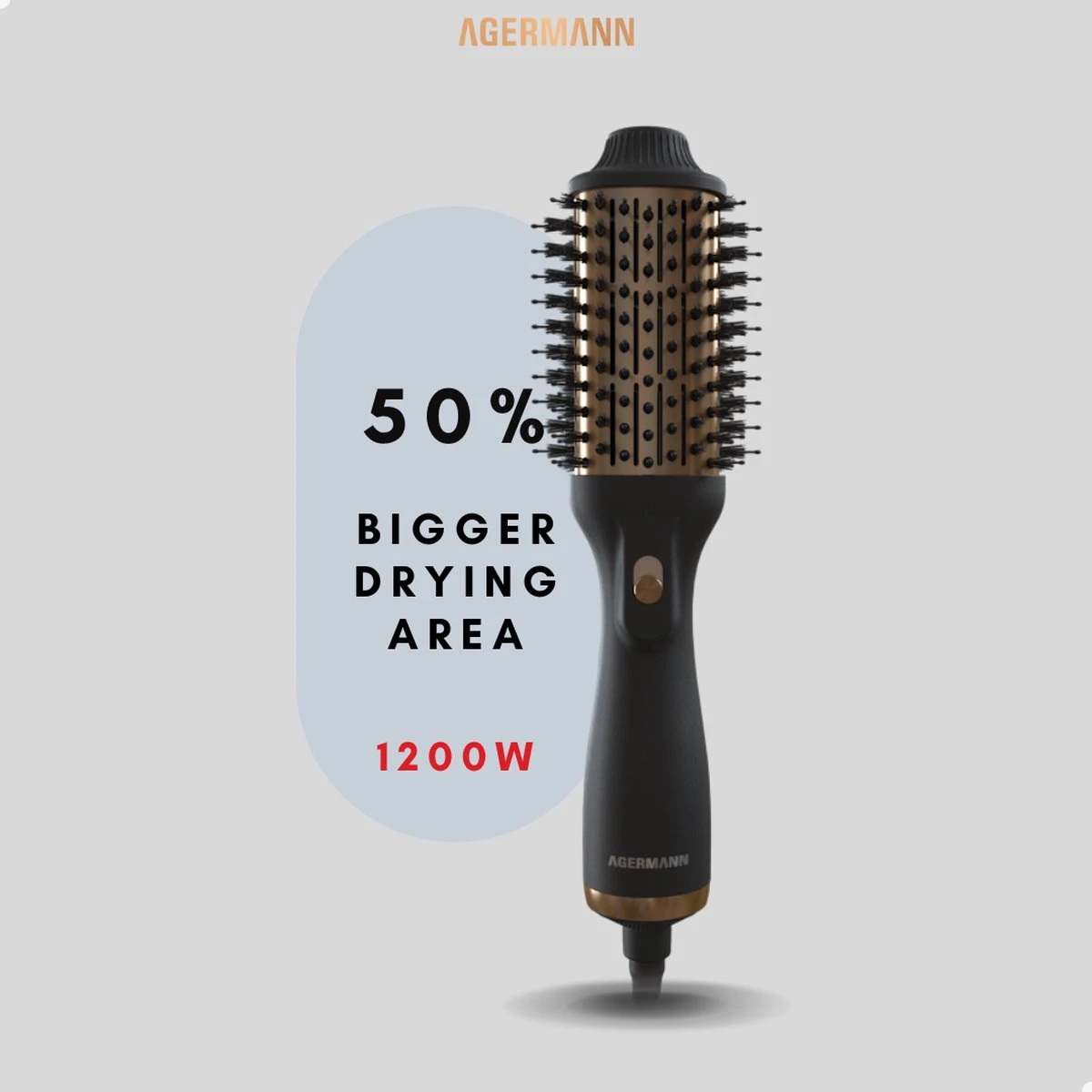 Agermann’s nieuw ontwikkelde Föhnborstel maakt gebruik van een nieuw ontwerp met de nieuwste technologieën. Föhn en Style je haar tegelijkertijd met de 4-in-1 föhnborstel. De borstel combineert een föhn, krulborstel, haarborstel en stijltang in één. Geschikt voor elk haartype, elke haardikte of voorkeur dankzij 3 blaasstanden, waaronder een koude-lucht stand. De föhnborstel droogt niet alleen het haar, maar voedt en verzorgt de haarwortels zelfs door de nieuwe technologiën. Halveer de tijd die je nodig hebt voor droog en glanzend haar zonder pluis met maximaal volume!