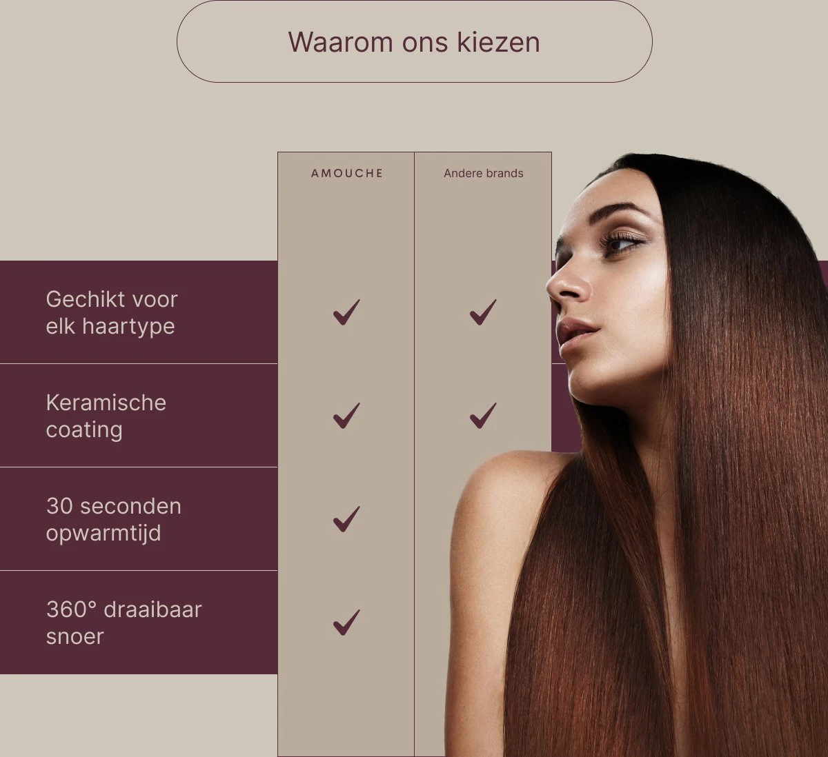 Maak het stijlen van je haar eenvoudiger en comfortabeler dan ooit met de Steampod van Amouche. Dankzij het 360 graden draaibare netsnoer en de royale lengte van 2 meter, kun je je haar vanuit iedere hoek stijlen zonder dat het snoer in de weg zit. Zo krijg je altijd het gewenste resultaat en kun je moeiteloos elke look creëren die je wilt.