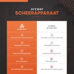 - 5-in-1 – De haartrimmer van AyeWay bezit over meerdere opzetstukken en heeft 5 verschillende functies van scheren en trimmen. Zo zorg jij voor een stralend en schone huid!