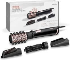 De Dry, Straighten & Style AS200E föhnborstel van BaByliss is een multifunctionele tool voor het creëren van diverse looks! Met de ionische roterende borstel creëer je gemakkelijk thuis een glad en glanzend kapsel. Net zoals bij de kapper of luxe blow-dry bar.