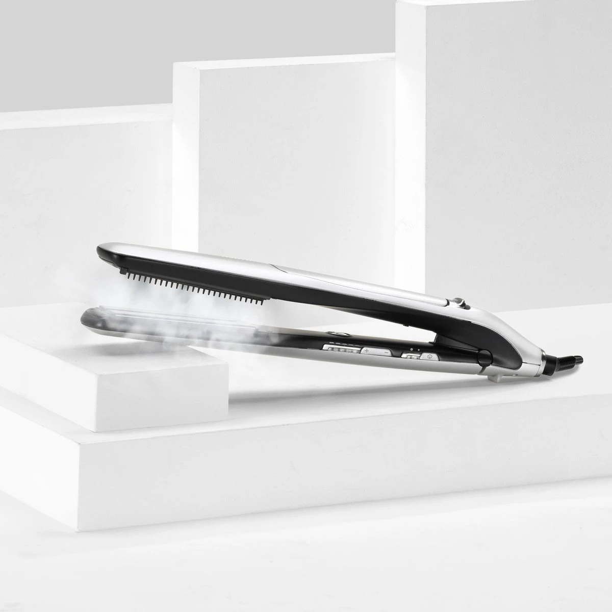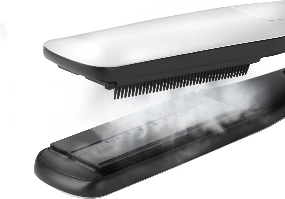 - De stoom hydrateert en verzorgd je haar. Geschikt voor elk haartype, maar speciaal voor dun, breekbaar haar. Je haar wordt net wat glanzender.