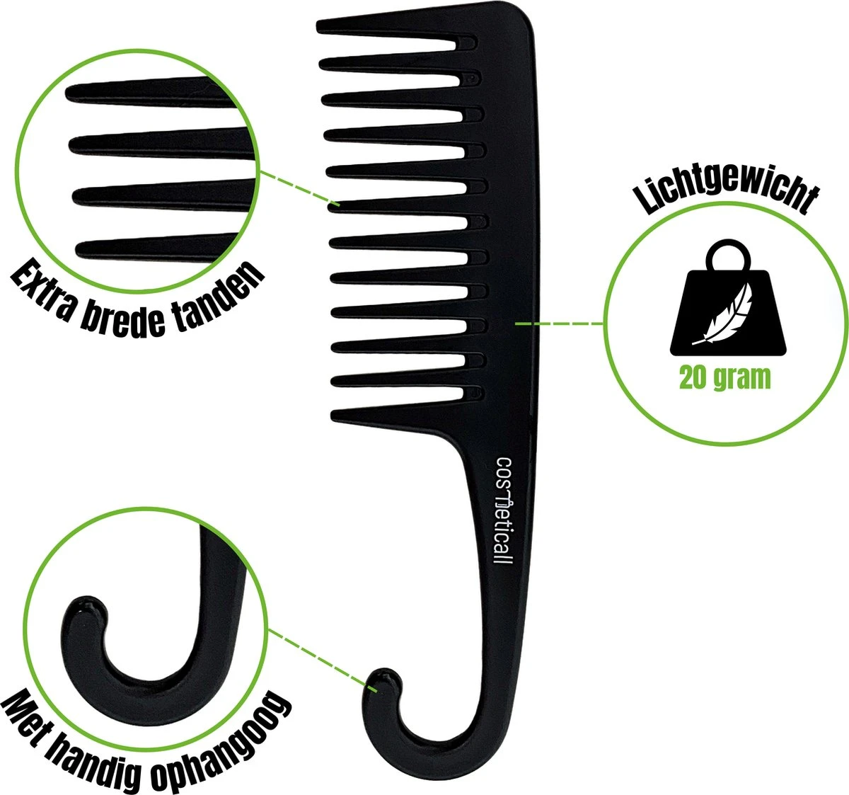 Gebruik de bijgeleverde professionele stylingkam van Cosmeticall voor een perfecte afwerking van jou kapsel. De kam is gemaakt van zeer degelijk en duurzaam materiaal en is zowel te gebruiken op nat als droog haar. Daarnaast is de kam antistatisch, extreem licht, bevat hij een handig ophangoog en is hij voorzien van 12 extra brede tanden. Tevens is de kam hittebestendig en ligt hij heerlijk in de hand dankzij een innovatief design. Door een speciale bewerking glijdt de kam eenvoudig door het haar. Hierdoor is hij dan ook uitermate geschikt voor professioneel gebruik.