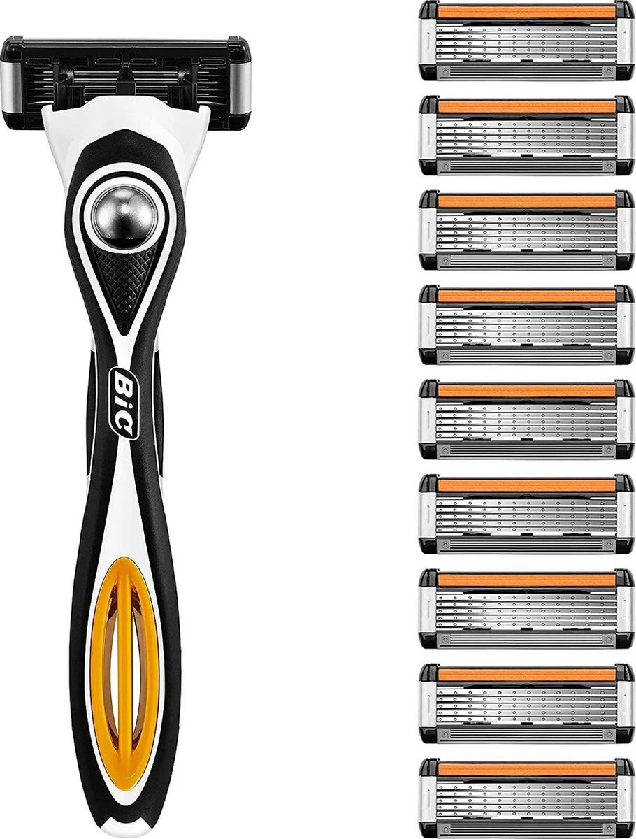 - Het scheersysteem BIC Hybrid 5 Flex en 10 navullingen met 5 nano-tech titanium bewegende mesjes voor een zeer glad scheerresultaat