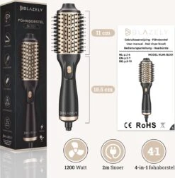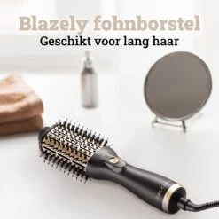 Stijl en föhn je haar tegelijkertijd met de Blazely 4-in-1 föhnborstel! Maak prachtige haarcreaties in een handomdraai met de Blazely föhnborstel, je haren stylen was nog nooit zo makkelijk. De föhnborstel combineert de technologie van een föhn, krulborstel en stijltang in één. De föhn is geschikt voor ieder haartype door zijn 3 handige standen, waaronder 1 koude lucht stand. Maak je haar droog en glazend in een mum van tijd met de Blazely föhnborstel!