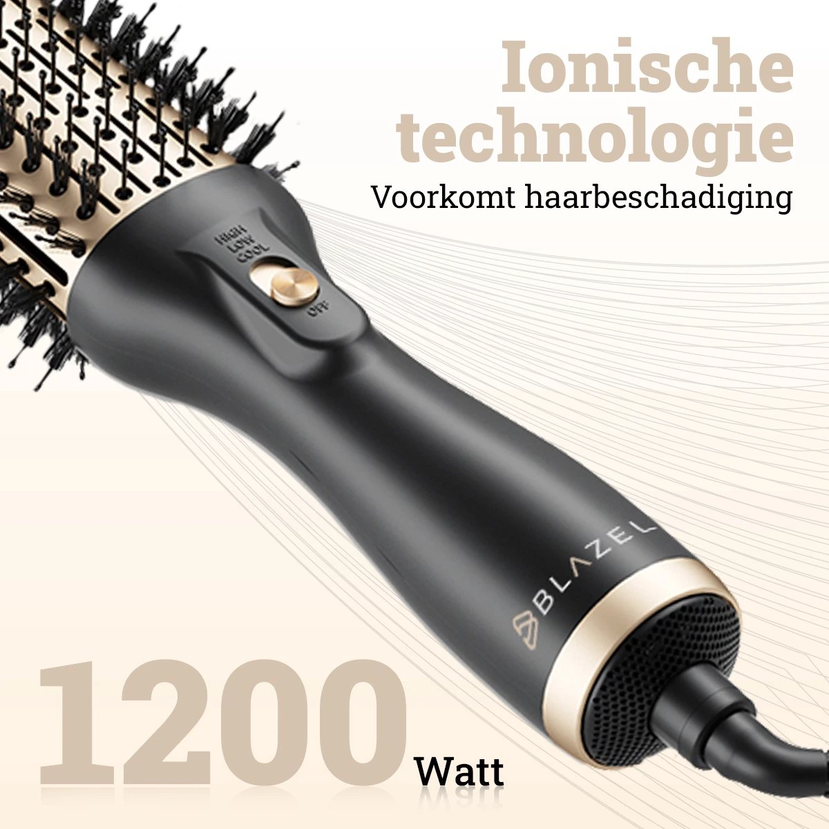 Bij een goede föhnborstel is het van belang dat die een sterke blaaskracht heeft. Daarom hebben we bij het design van de Blazely föhnborstel hier extra rekening mee gehouden. Hij heeft met een vermogen van 1200W namelijk het sterkste blaasvermogen in de markt! Je haren zijn tot wel 50% sneller droog dan met een normale föhn. Dat bespaart je niet alleen tijd maar ook een hoop werk.