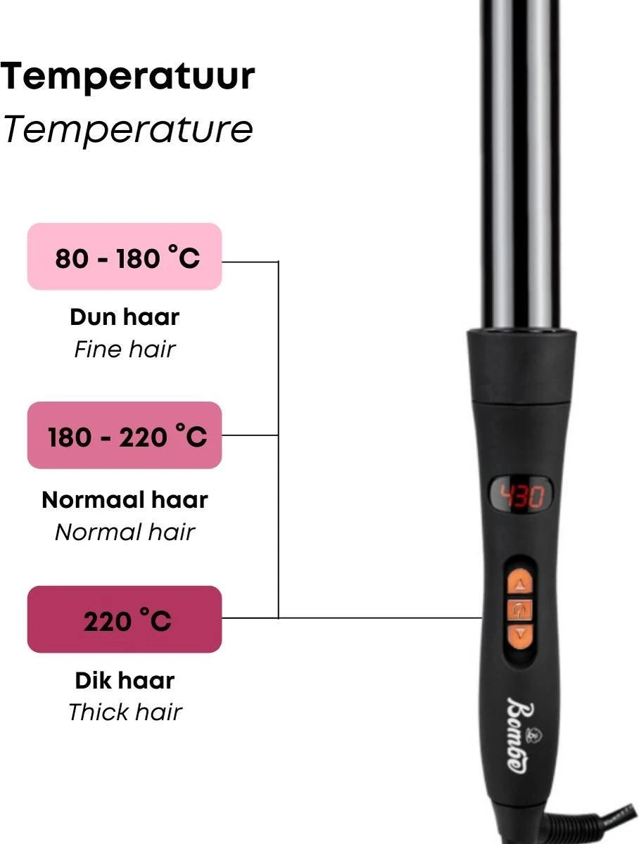 Opzoek naar een krultang die jou een magische bos krullen geeft? Het is nog nooit zo eenvoudig geweest met de nieuwe Bombé Magic Curling Wand! Onze krultang is gemaakt van keramiek wat ervoor zorgt dat jouw haar niet of nauwelijks beschadigd. Binnen 3 seconden heb je een haarlok omgetoverd tot een glanzende prachtige krul. De temperatuur is zelf in te stellen via het LCD display en heeft een bereik van 60°C – 220°C. De 25mm staaf geeft jou een mooie krul die zowel past bij kort of lang haar. Once you go Bombé, you never go back. Join our sisterhood! @bombe.hair