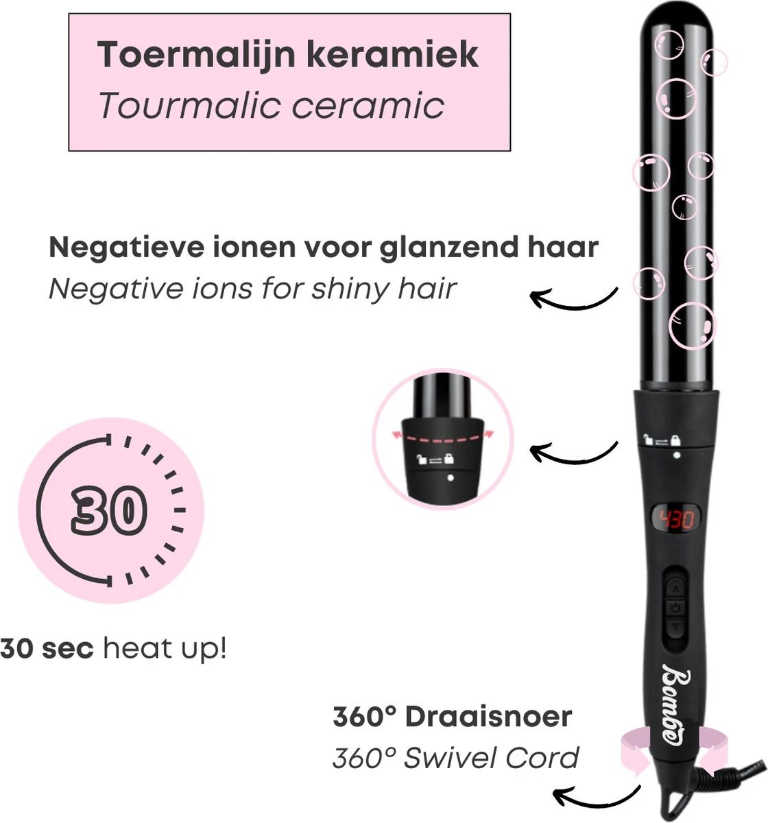 Welke haarstijl wil jij vandaag? Verwissel eenvoudig de opzetstukken en kies voor de look die past bij deze dag. Heb je een feestje, vergadering of wil je er gewoon altijd goed uit zien, met de 3-in-1 krultang van Bombé creëer je een look die past bij elke gelegenheid.