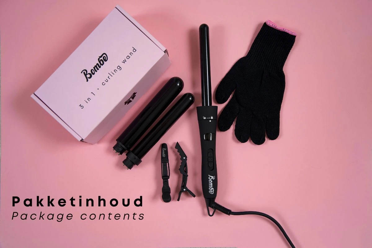♥ Inhoud verpakking: 1x krultang met 3 opzetstukken, hittebestendige handschoen en handleiding NL/ENG