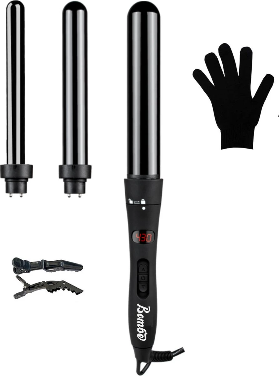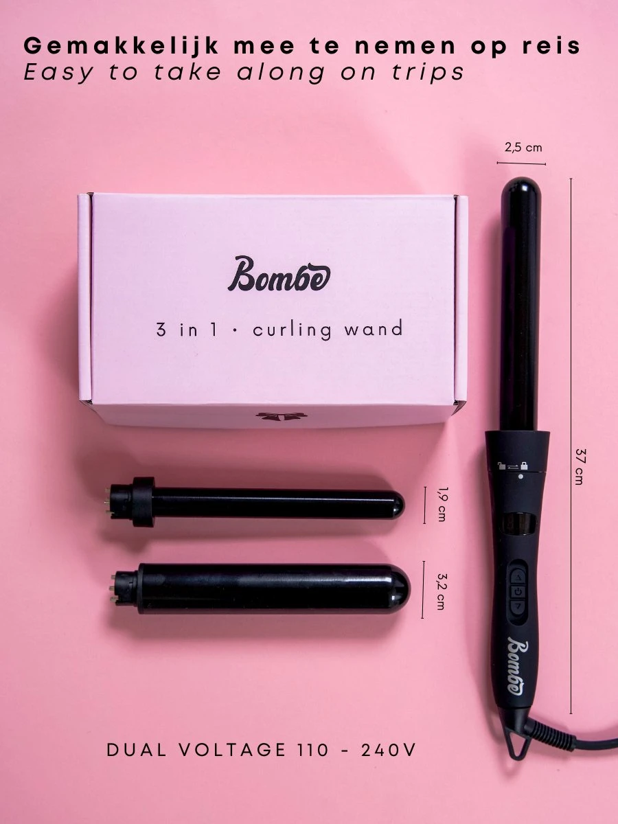 Hi Babe, wil jij ook elke dag een andere look? Creëer drie verschillende looks met de Bombé Magic 3-in-1 Krultang! De krultang beschikt over 3 verschillende soorten opzetstukken en is in temperatuur verstelbaar om zo de juiste temeratuur in te stellen voor elk haartype. De keramische, tourmaline coating zorgt ervoor dat jij mooie, glanzende krullen krijgt en dat het haar minimaal beschadigd wordt. De 3-in-1 krultang is de musthave voor iedereen die gek is op verschillende soorten krullen. Zoek ons op instagram: @bombe.hair ♥♥