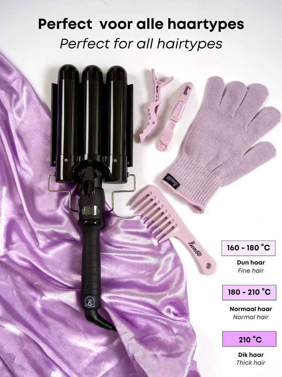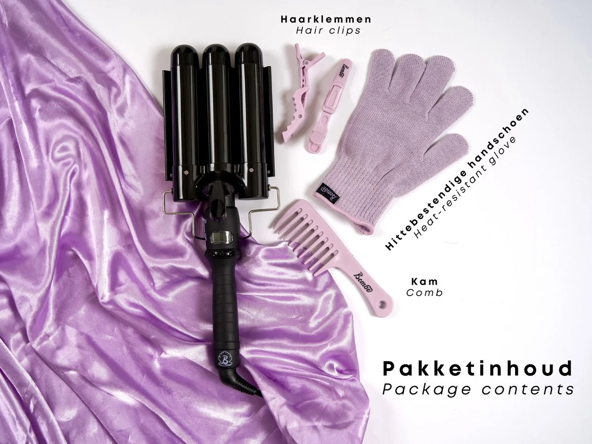 ♥ Inhoud verpakking: 1x Bombé krultang, 1x hittebestendige handschoen en 1x handleiding NL/ENG