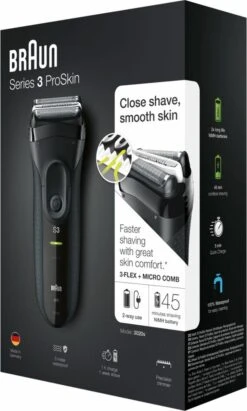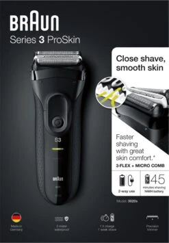 Het Braun Series 3 ProSkin 3020s oplaadbare elektrische scheerapparaat biedt een efficiënte scheerbeurt in slechts één beweging
