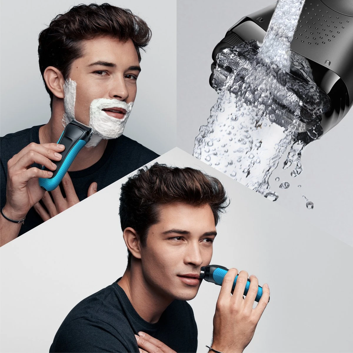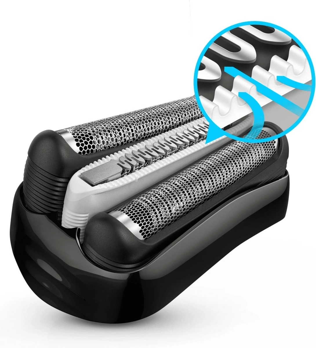 - Een gespecialiseerde Micro Comb grijpt meer haar in één beweging, voor een snellere en zachtere scheerbeurt; vergeleken met vorige Series 3. Getest op een 3-dagenbaard
