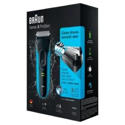 - Inhoud: Braun Series 3 ProSkin scheersysteem, beschermkap, reinigingsborstel, intelligente stekker voor automatische aanpassing aan 100-240 voltage