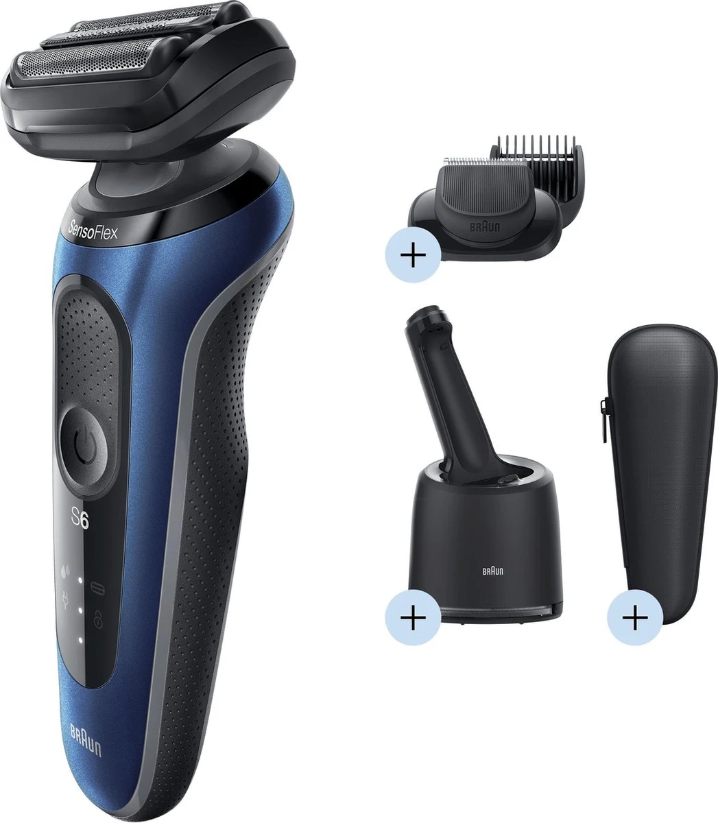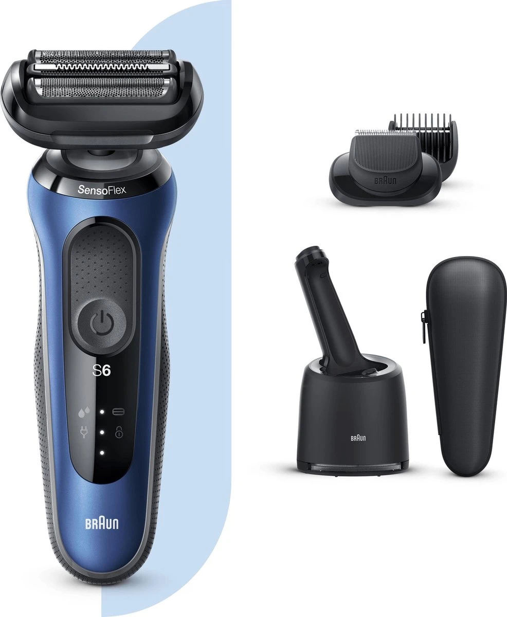 Elektrisch scheerapparaat met SensoFlex: de dermatologisch geteste flexibele scheerkop past zich aan voor minimale druk op de gevoelige huid