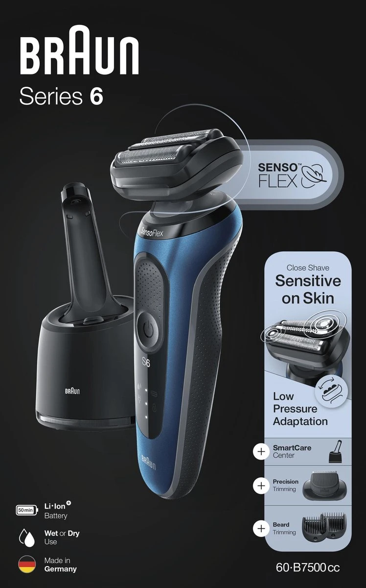 De dermatologisch geteste SensoFlex-kop minimaliseert de druk op de gevoelige huid, maar geeft je toch een gladde scheerbeurt.