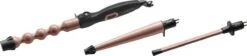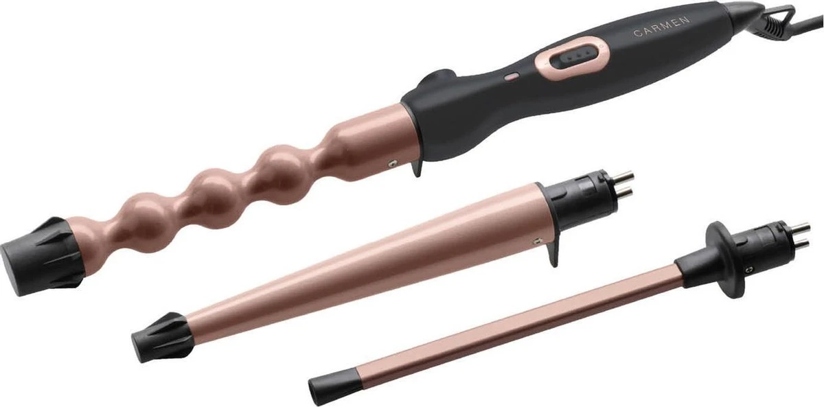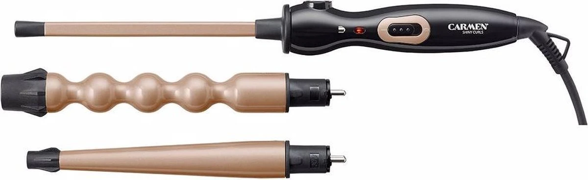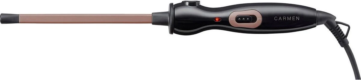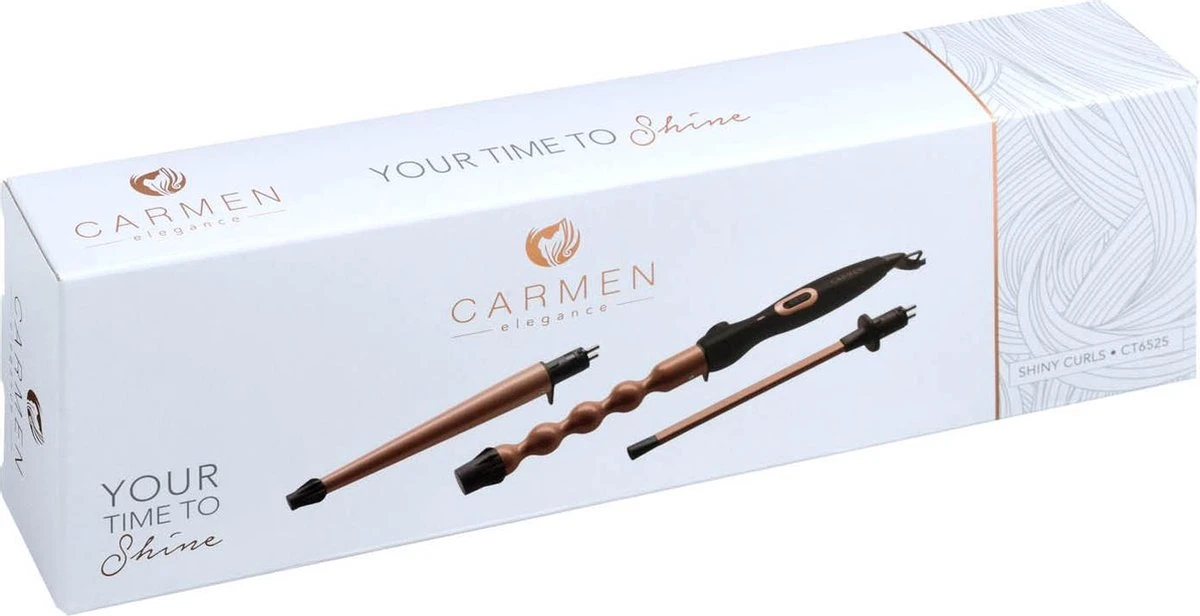 De Carmen CT6525 krultang is een krultang met drie verschillende diameters geschikt voor het creëren van slag of krullen in je haar. Dankzij de Carmen CT6525 heb jij de keuze uit drie verschillende opzetstukken van Ø 10 mm, Ø 13-28 mm en Ø 13-25 mm. De CT6525 krultang van Carmen is voorzien van een keramische coating. Dankzij deze coating zal het haar beter gekruld worden. De Carmen CT6525 krultang heeft een temperatuur van 200 °C, die dankzij de coating evenredig wordt verspreid. Deze krultang is geschikt voor kort tot lang haar. Dankzij het 360˚ draaibare snoer van 1.8 meter lang kun je veilig krullen zonder dat de kabel in de weg zit.