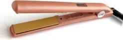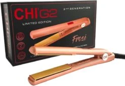 CHI Stijltang G2 – Frose bevat keramische platen die voorzien zijn van titanium, waardoor de stijltang voor ieder type haar geschikt is. De vernieuwende technologie heeft vaste standen waardoor de temperatuur gemakkelijk in te stellen is. Deze vaste standen zijn gebaseerd op het haartype, hierdoor is het meteen duidelijk welke temperatuur u het beste kan gebruiken voor de styling. De eerste temperatuurinstelling is 180 graden en is speciaal voor fijn en dun haar. Het LCD display wordt op deze temperatuurinstelling blauw. De tweede temperatuurinstelling geeft de kleur groen aan, dit wil zeggen dat de temperatuur van de CHI G2 Stijltang de 200 graden heeft bereikt. Deze temperatuur is perfect voor normaal haar. De laatste temperatuurstand van de CHI stijltang geeft de kleur rood aan, de stijltang is dan opgewarmd op 220 graden. Deze stand is perfect voor dik haar. Doordat deze functie afgesteld is op het haartype zal het haar niet beschadigen door een te warme temperatuur. Door deze temperatuurfunctie is de CHI stijltang erg gebruiksvriendelijk. Daarnaast kan bij de CHI G2 de temperatuur ook naar persoonlijke wens worden ingesteld. Bij het bereik van 180 graden is de temperatuur in te stellen met stapjes van 5 graden.