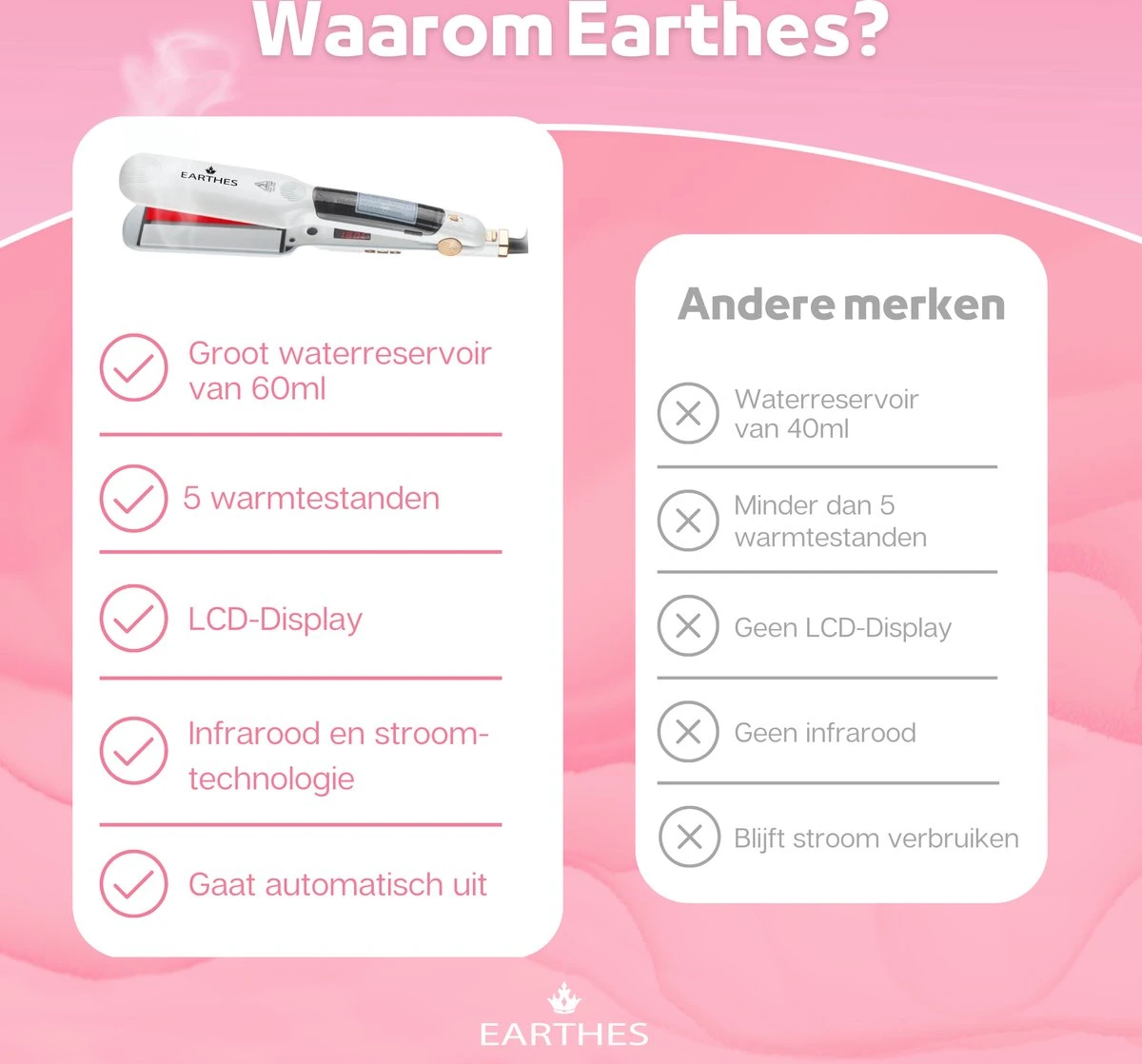 Keer op keer egaal resultaat met de Earthes stoomstijltang