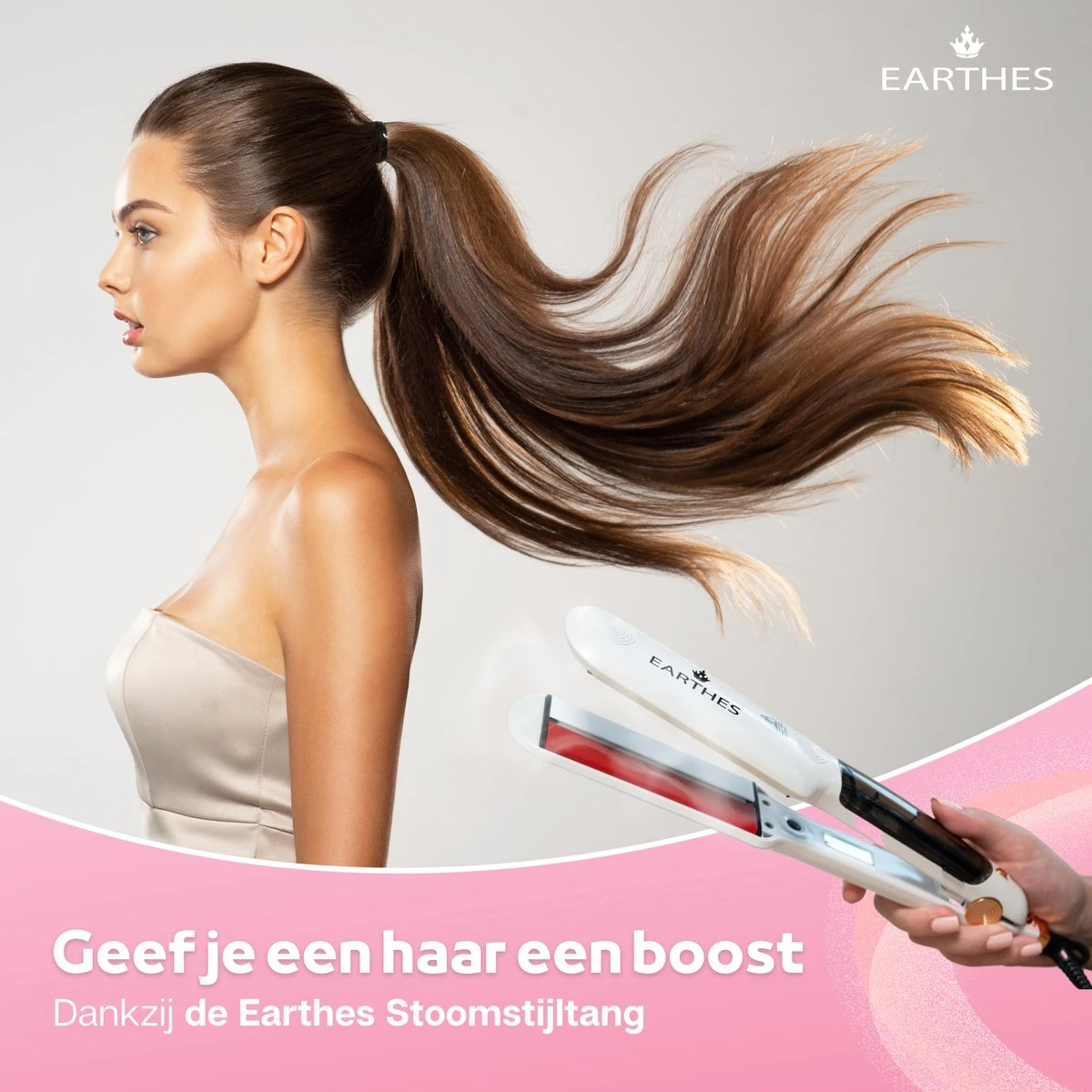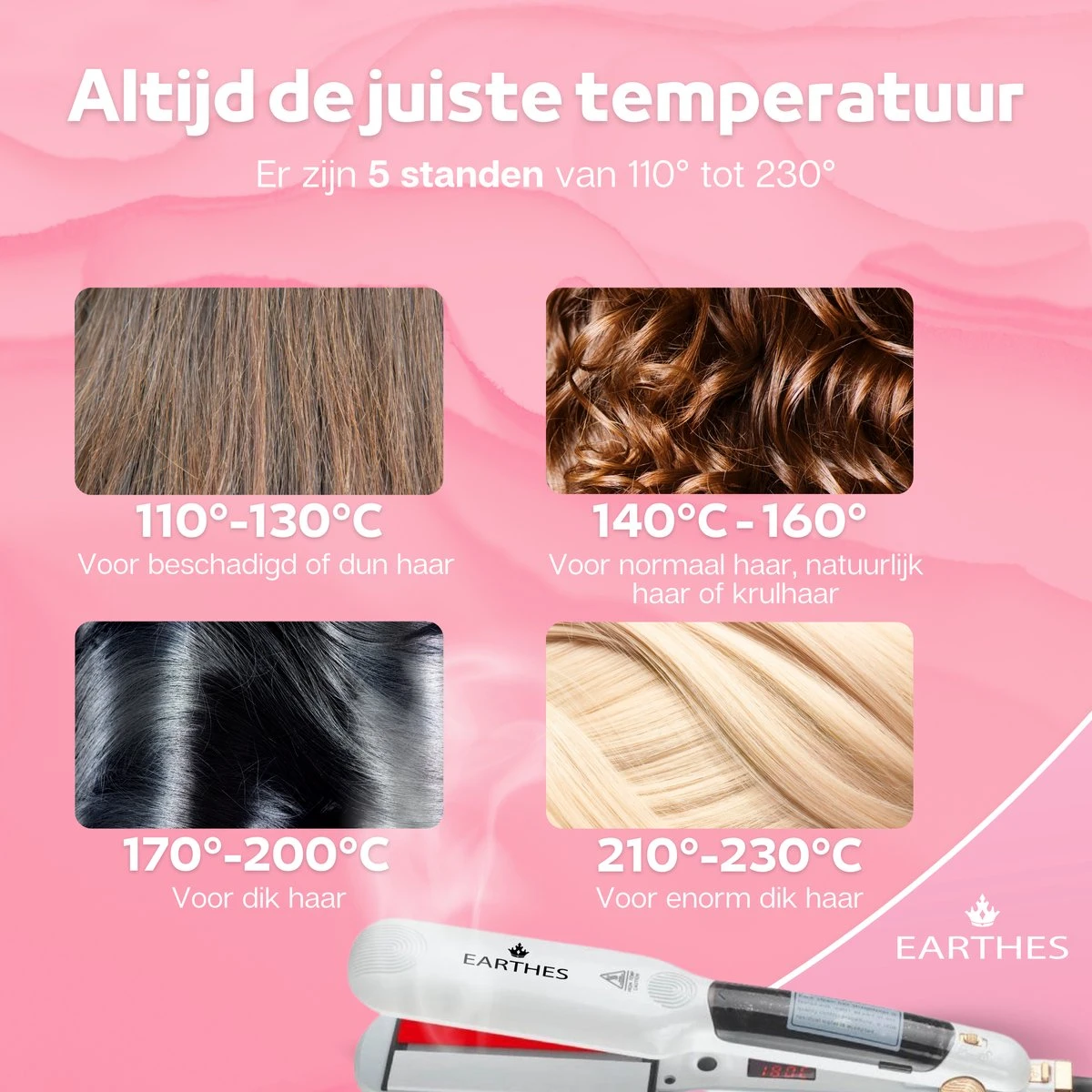 De Earthes stijltang is geschikt voor elk type haar