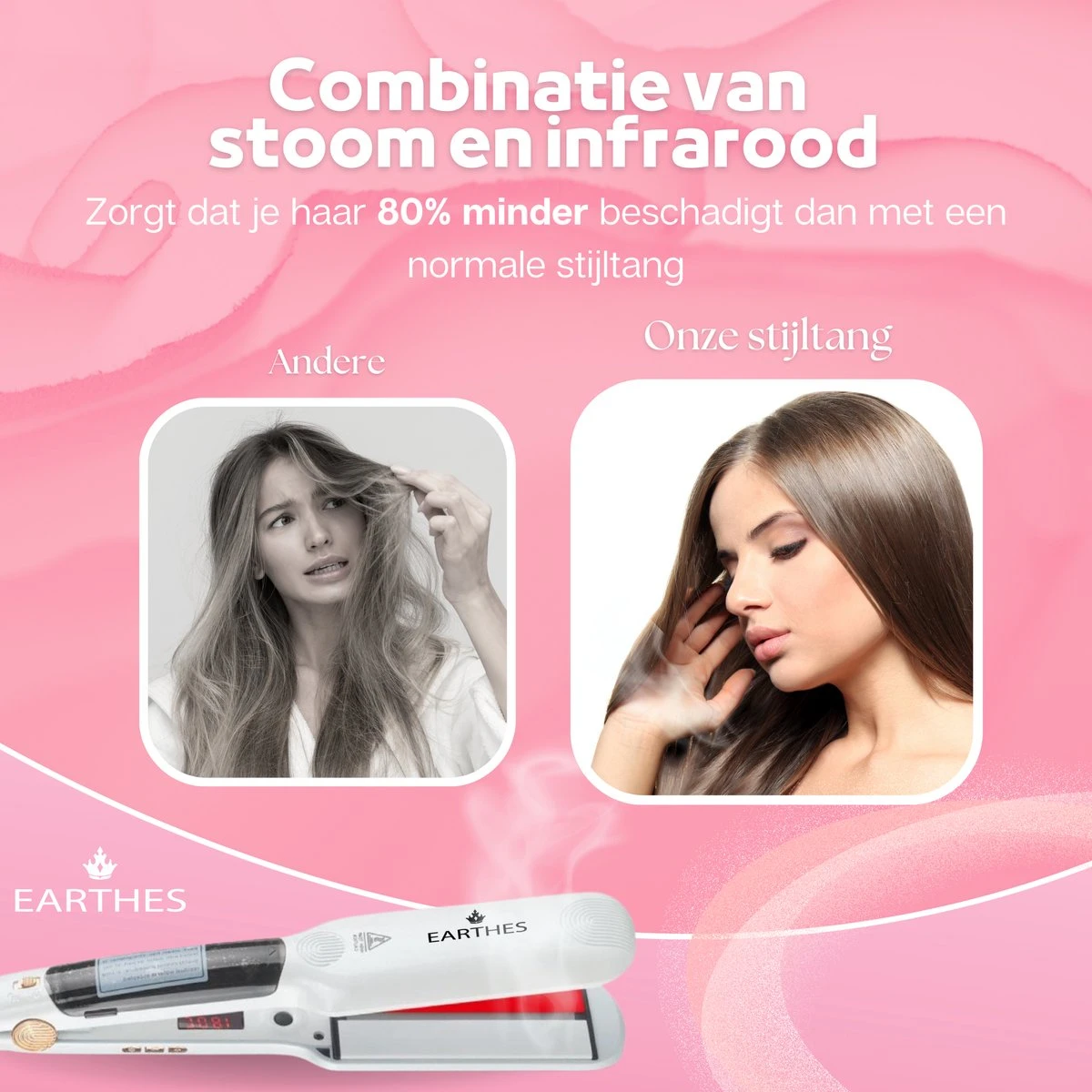 – 80% Minder beschadiging dan traditionele stijltang