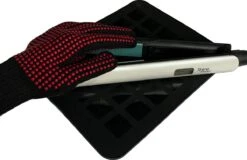 Let op: Dit product is een hulpmiddel bij het stijlen of krullen van het haar. De handschoen kunnen hoge temperaturen kort verdragen. Dus niet geschikt voor het langdurig vasthouden van een warme stijl- of krultang.