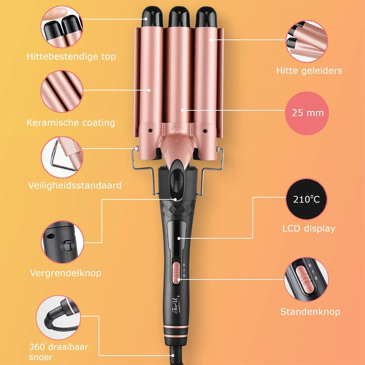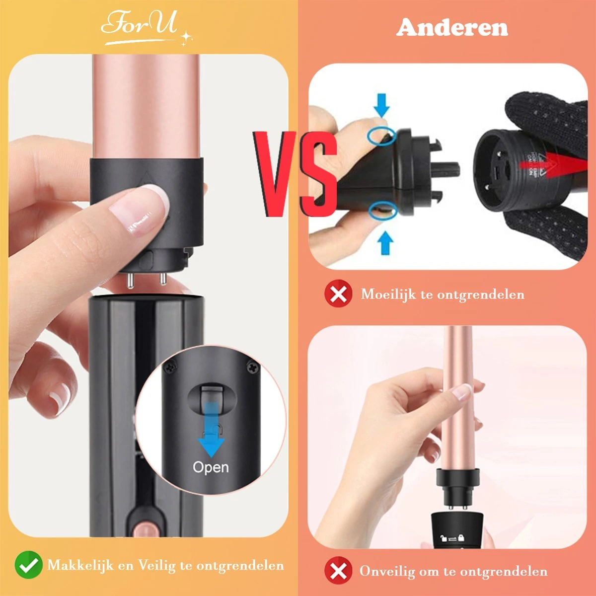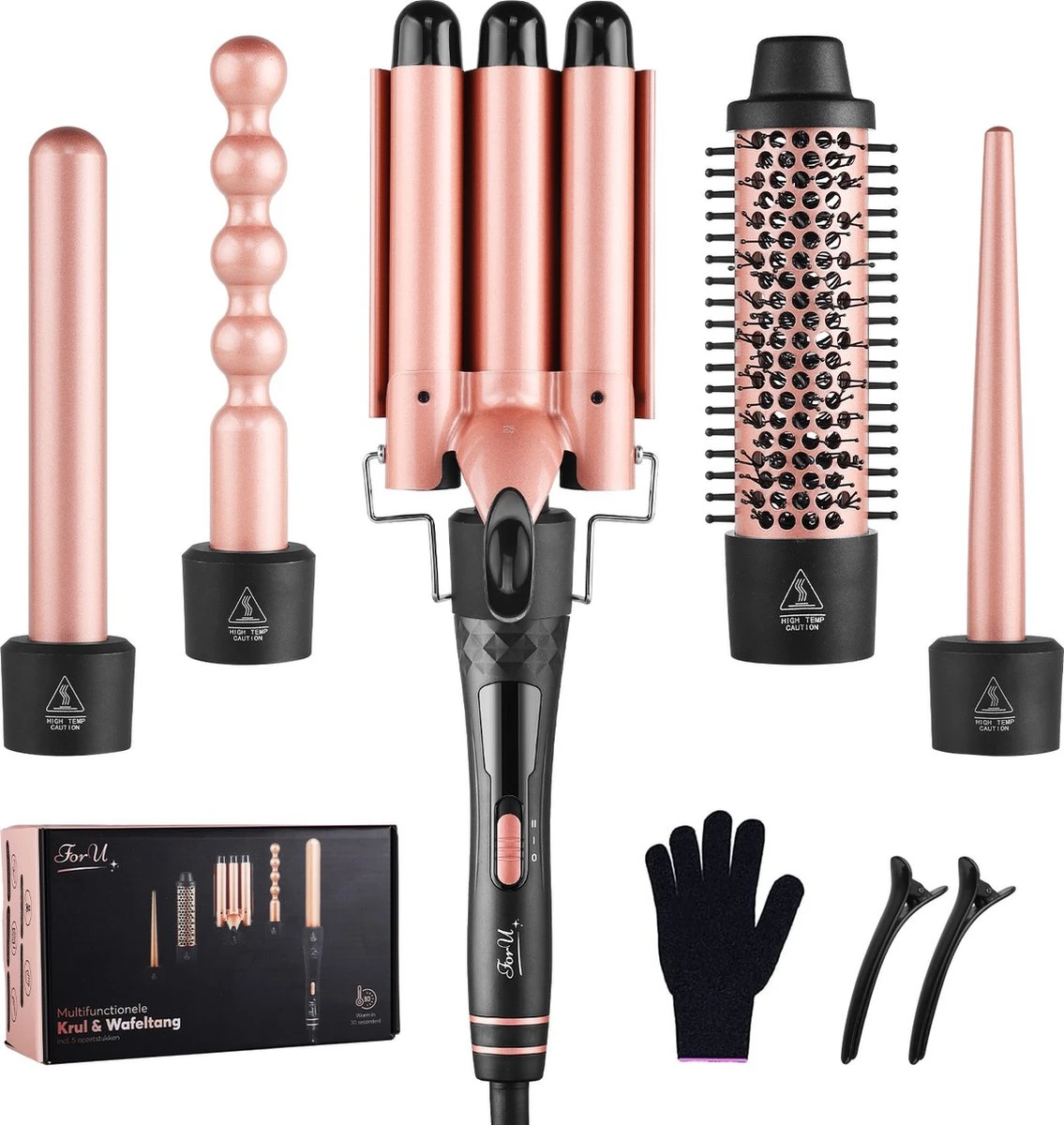 Ben je op zoek naar de perfecte beache waves, wil je een relaxte slag in je haar of ga je voor een bos krullen? Met de 5-in-1 krul & wafeltang van ForU is dit in een handomdraai gefikst. Met de de complete collectie eenvoudig verwisselbare opzetstukken creëer je zijdezachte waves en krullen die langdurig blijven zitten.