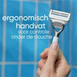 - Het scheermesje heeft een kleine kop en een precisietrimmer aan de achterkant van de mesjes om lastige plekken te bereiken