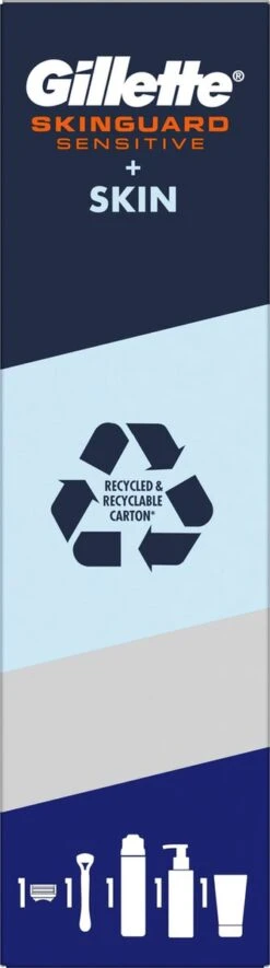 Gillette® Gillette Geschenkset SkinGuard Sensitive – Scheersysteem Voor Mannen + SkinGuard Scheergel 200ml + Hydraterende Crème 100ml + Gezichtsreiniger 140ml
