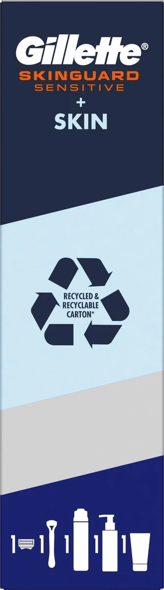 Schenk voor zijn gevoelige huid de Gillette SKIN geschenkset. De Gillette SkinGuard Sensitive is het eerste scheersysteem van Gillette speciaal ontworpen voor mannen met een gevoelige huid. De unieke SkinGuard tussen de mesjes absorbeert druk, duwt de huid plat en brengt de mesjes omhoog om het haar op huidniveau af te scheren, zodat irritatie voorkomen kan worden en zorgt voor een voelbare verlichting. De 2 optimaal uit elkaar geplaatste mesjes verminderen het trekken. Het SkinGuard Sensitive scheersysteem voor gevoelige huid is klinisch bewezen en geeft de betrouwbare scheerbeurt die u verwacht van een Gillette scheersysteem. De Gillette SKIN Gezichtsreiniger verwijdert deze onzuiverheden en effent het pad van het scheermes, terwijl de huid schoon en fris aanvoelt. De Gillette SKIN hydraterende crème helpt de natuurlijke vochtbarrière van de huid te versterken en zorgt voor een gladde en comfortabele huid.