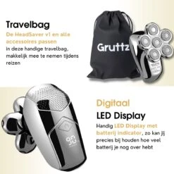 - 9-in-1 – De HeadSaver v1 van Gruttz heeft letterlijk alles wat je nodig hebt bij een scheerbeurt; van neustrimmen, tot baardtrimmen, tot gezichtsmassages. Het is eigenlijk een soort personal assistant ;-).
