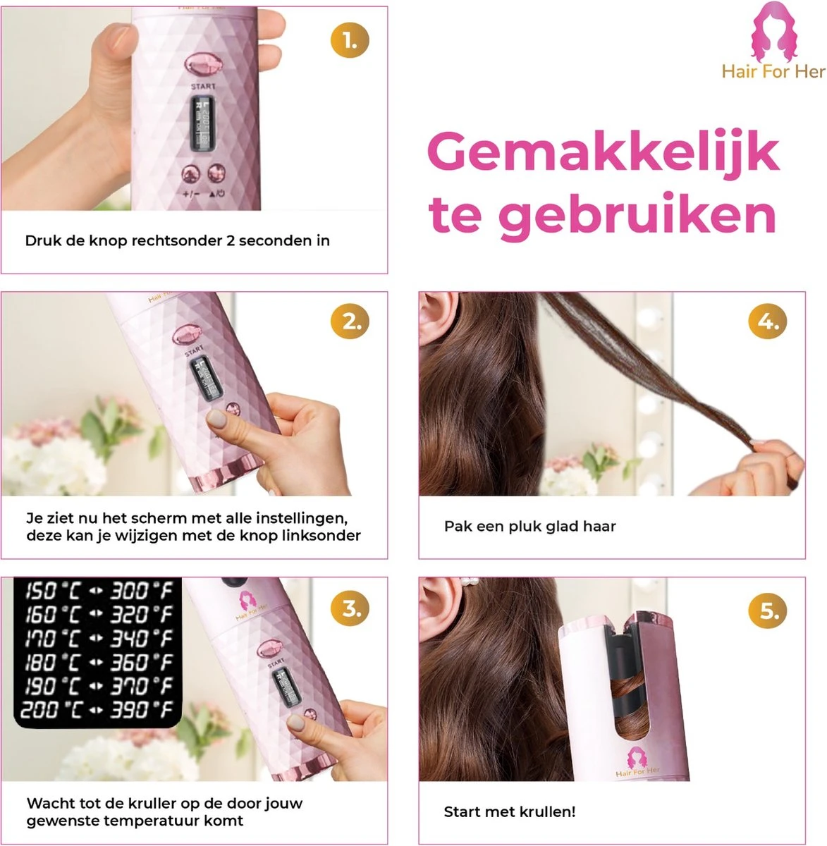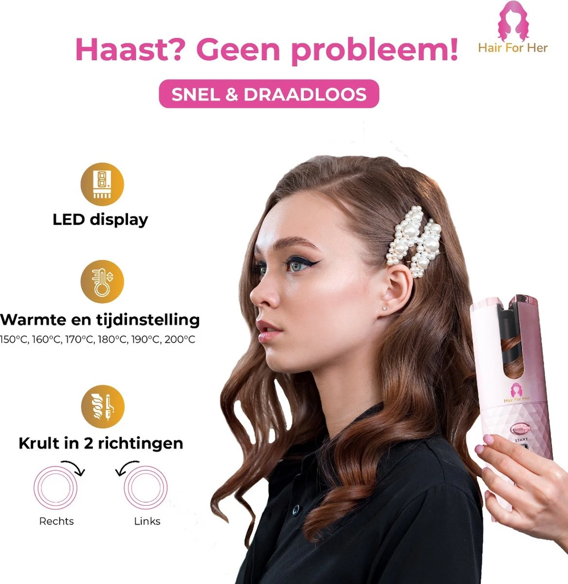 Hair For Her staat voor beauty en zelfvertrouwen, met deze haarkruller wordt het prachtig krullen van jouw haar kinderspel.