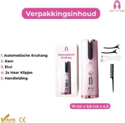 Inhoud Verpakking: Automatische Krultang, Kam, Etui, 2x haar klipjes, Handleiding