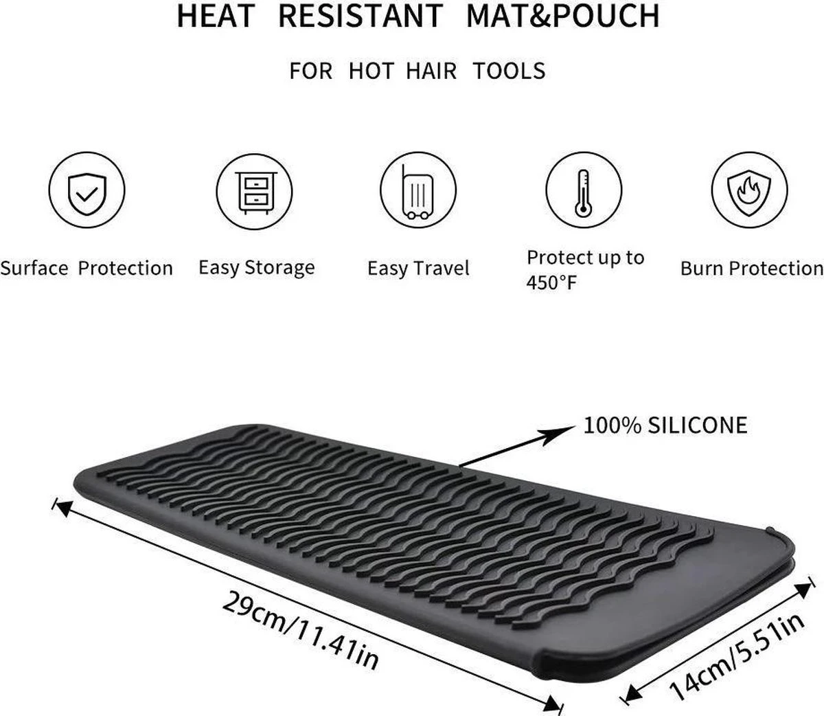 Ben je ook altijd op zoek naar een plek om je hete stijltang, krultang of föhn neer te leggen tijdens het stylen van je haren? Je kunt je zoektocht staken: met deze mat heb je namelijk altijd een handige, hittebestendige plek om je hete hairstools neer te leggen of op te bergen! De mat is hittebestendig tot 230 graden.