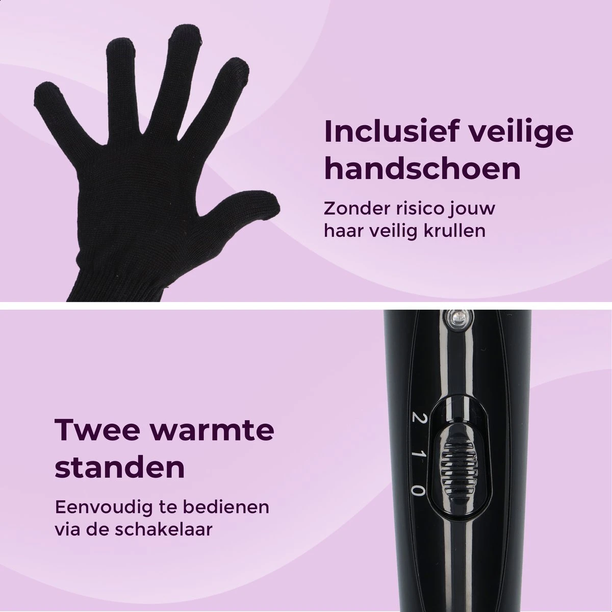 Lange lokken of juist dunner haar? De krultang is geschikt voor alle soorten krullen en haar. golventang wordt geleverd met 5 opzetstukken in meerdere maten zodat je elke keer weer de perfecte krullen kunt maken.