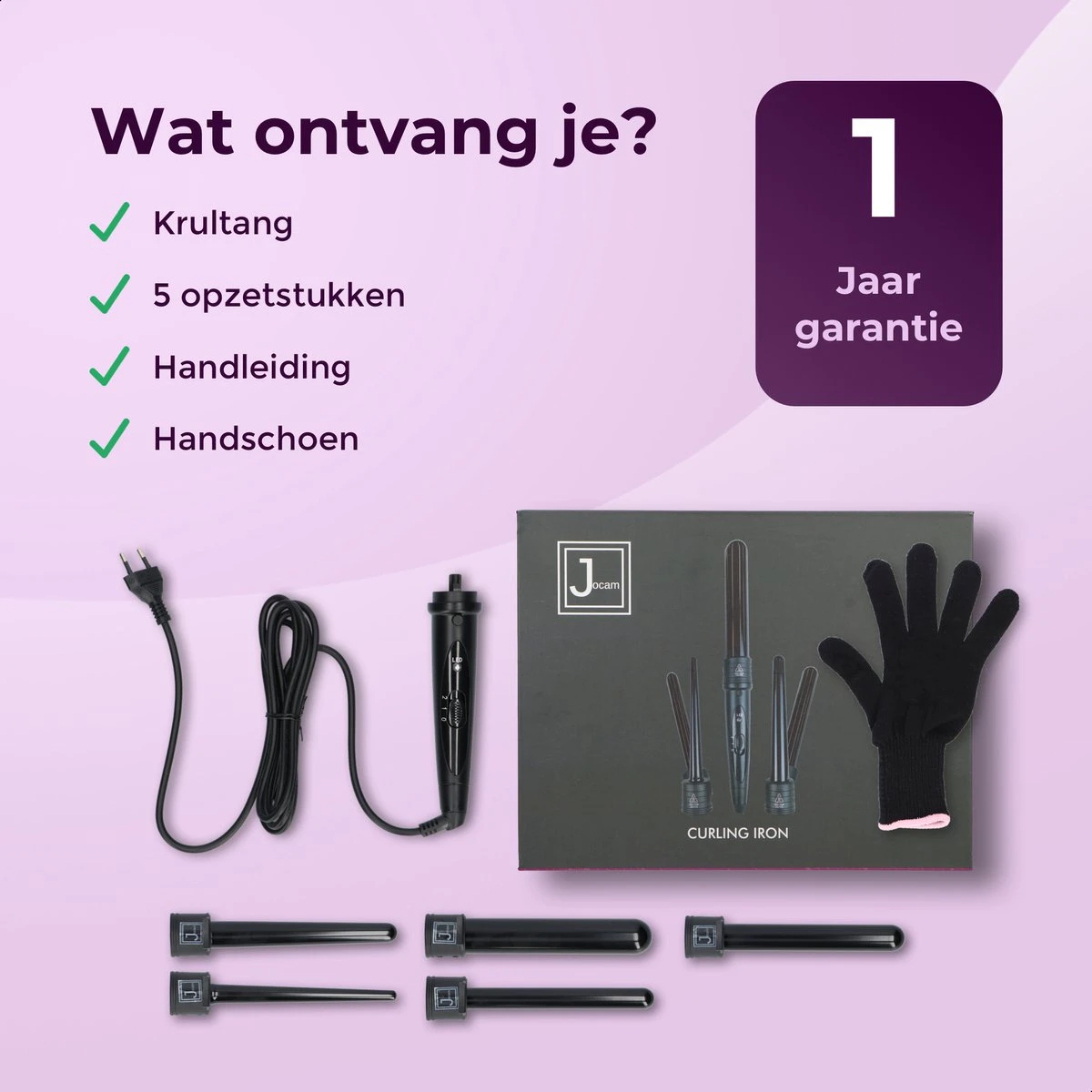 Haar krullen zonder uren voor de spiegel te staan? Met de Jocam® golvenkrultang creëer je jouw droomkrullen in een handomdraai. Met 5 verschillende maten krullen, een regelbare temperatuur en draaibare kabel kun jij de mooiste krullen maken.