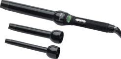 Een krultang set met drie opzetstukken met verschillende diameters om verschillende looks te creëren.