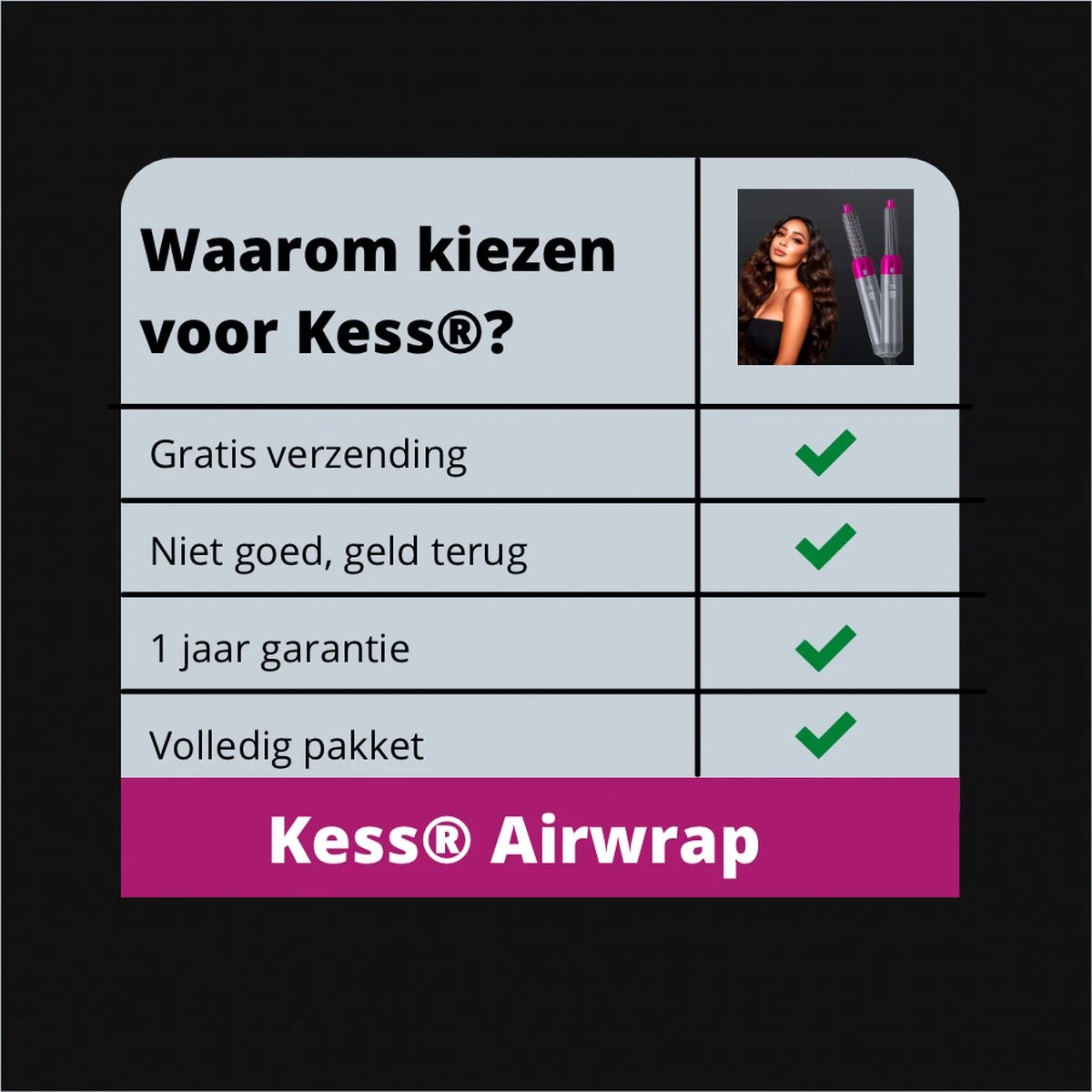Bestel vandaag de Kess® Airwrap en creeer elke dag de gewenste haar resultaat vol volume, glans en prachtige krullen. Elke dag vol zelfvertrouwen, want je haar zit goed!