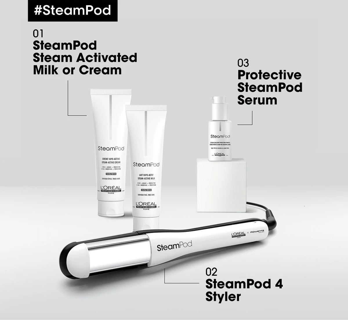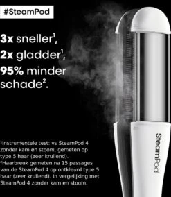 L’Oréal Professionnel Steampod 4 is de vierde generatie van de iconische stoomstijltang. Een stoomstijltang welke niet alleen het haar kan steilen maar waar je ook prachtige krullen mee maakt. De SteamPod 4 maakt dit mogelijk! Met deze stoomstijltang creër je verschillende haarstylen van waves tot en met krullen of steil haar.