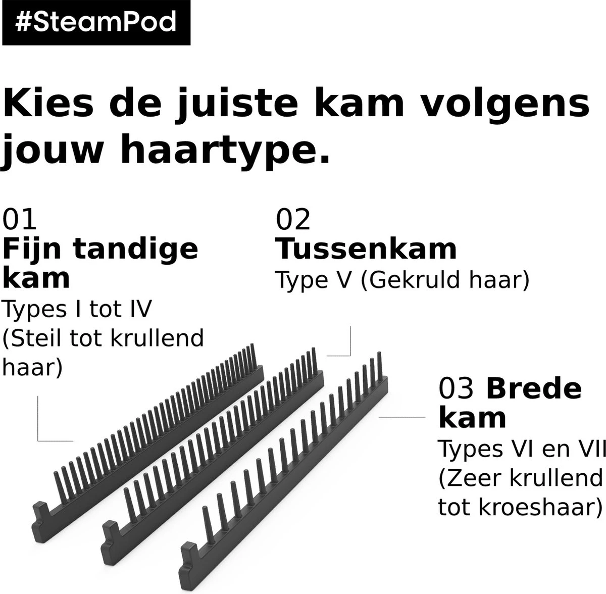 ¹Instrumentele test: vs SteamPod 4 zonder kam en stoom, gemeten op type 5 haar (zeer krullend).