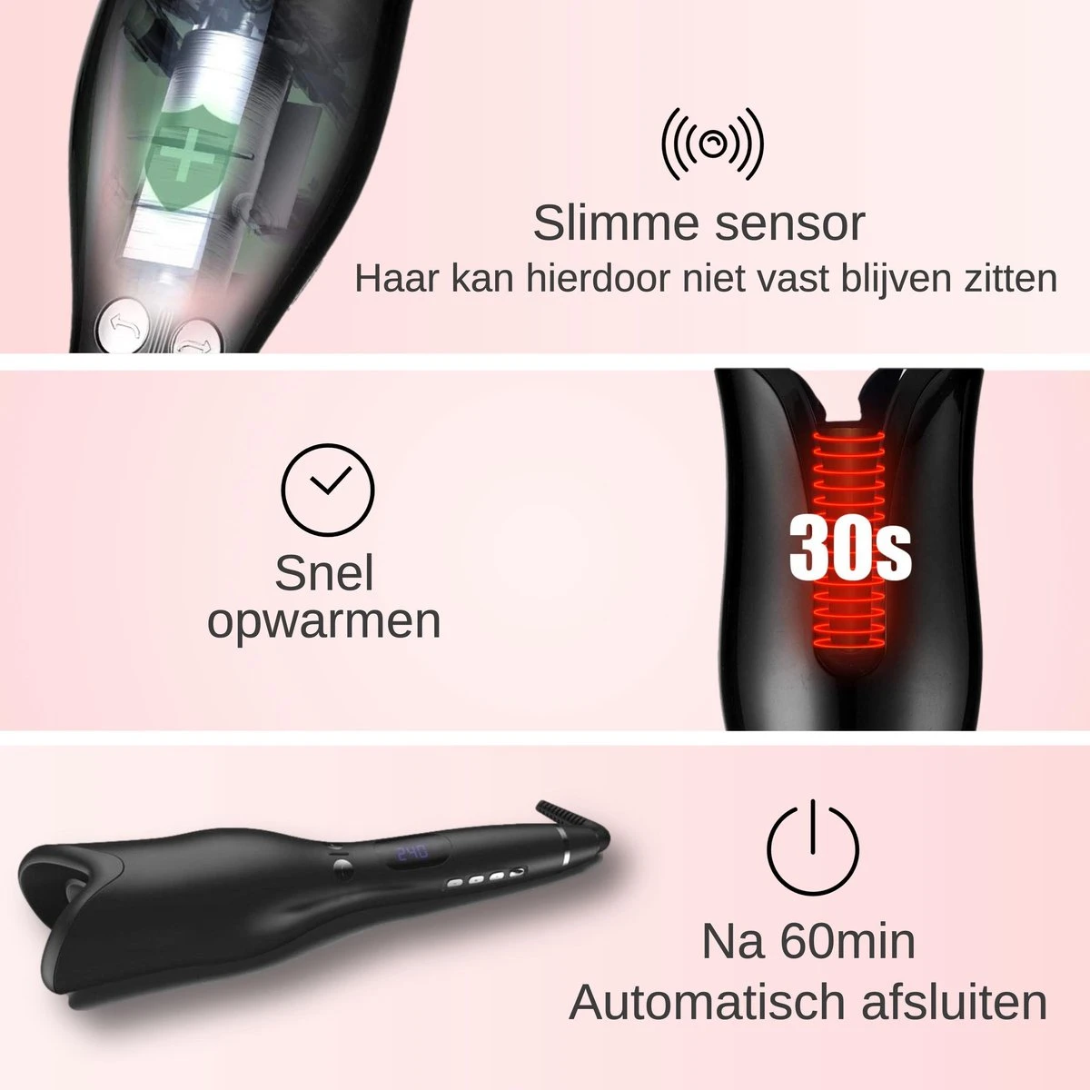 Je kan zelf de temperatuur bepalen. Zo bepaal jij dus helemaal zelf hoe de krul eruit komt te zien! De ultieme flexibiliteit, aangepast aan jouw krullen.
