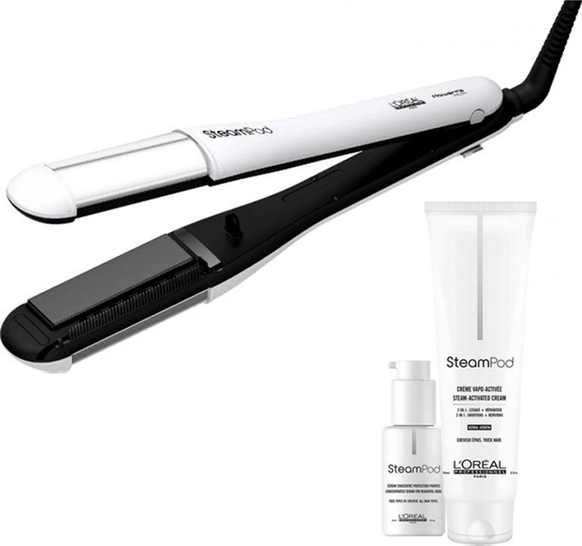 L’Oréal Professionnel Steampod 4 is de vierde generatie van de iconische stoomstijltang. Een stoomstijltang welke niet alleen het haar kan steilen maar waar je ook prachtige krullen mee maakt. De SteamPod 4 maakt dit mogelijk! Met deze stoomstijltang creër je verschillende haarstylen van waves tot en met krullen of steil haar.