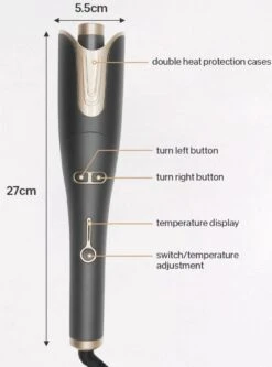 Deze Automatische haar krultang curling wands kan creëren grote natuurlijke sexy haar Waver voor elke schoonhed,hoge technologie toermalijn en ionische technologie voor maximale haar conditie van glanzender en gezonde lange ogende geloven.de haar curler zal niet handelen zoals andere haar krulspelden die altijd krul je haar met krozen.de nieuwe keramische coating garandeert de krozen controle terwijl resteren de veilig zonder schade.Deze Automatische krultang heeft 3 timer standen, en 4 tempertauurstanden (170 – 190 – 210 -230 graden)