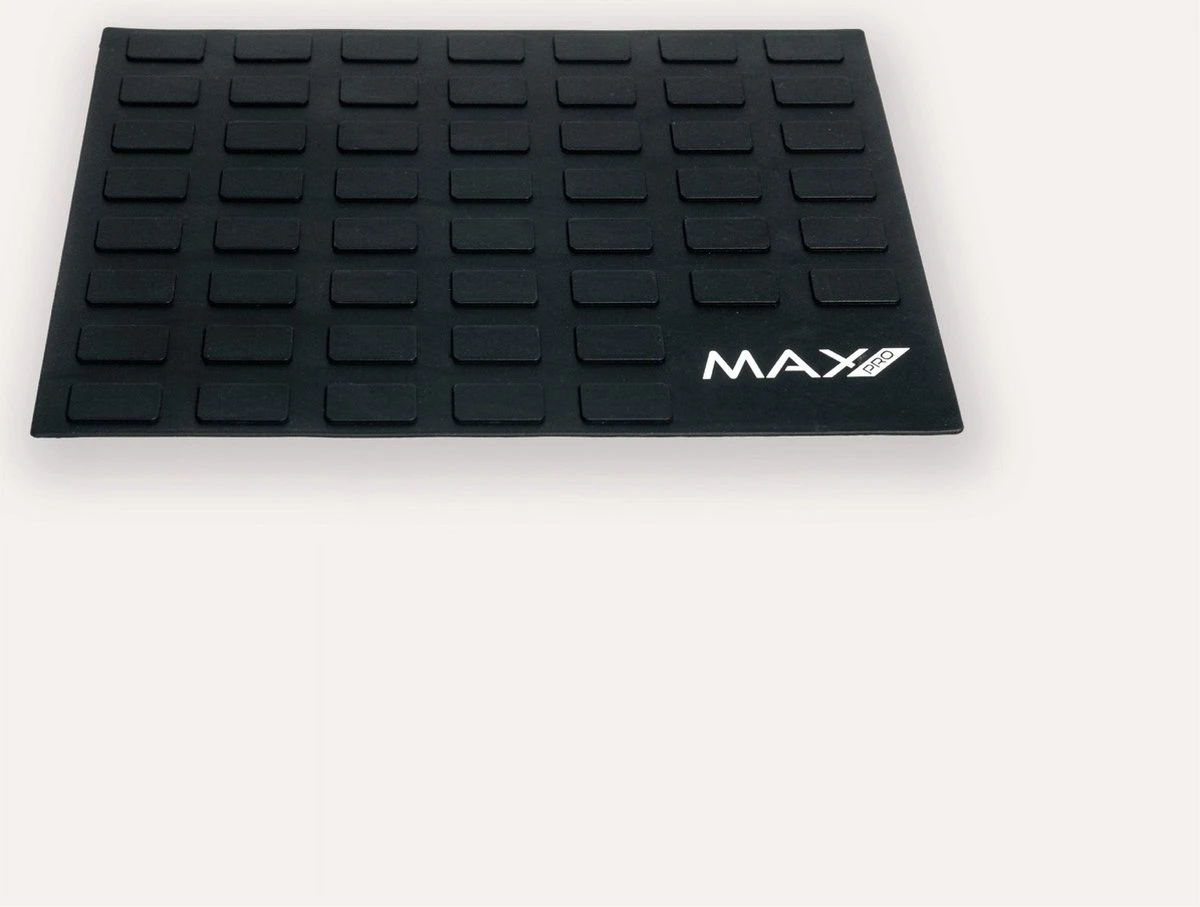 Max Pro Protection Mat [L 25cm x B 20cm] De Protection Mat beschermt oppervlakken tegen de hitte van een stijl- of krultang. De mat is gemaakt van fijne, hitte resistente siliconen en beschermt de ondergrond tot een temperatuur van 180?. Tijdens het krullen of stijlen kun je meerdere tools op de mat plaatsen om beschadiging van je interieur te voorkomen. De mat is leverbaar in de kleur zwart.
