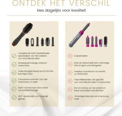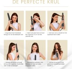 - ) 6 verschillende opzetstukken: De Hairwrap wordt geleverd met een verscheidenheid aan opzetstukken waarmee je verschillende stijlen kunt creëren, zoals krullen, golven maar ook steil haar.