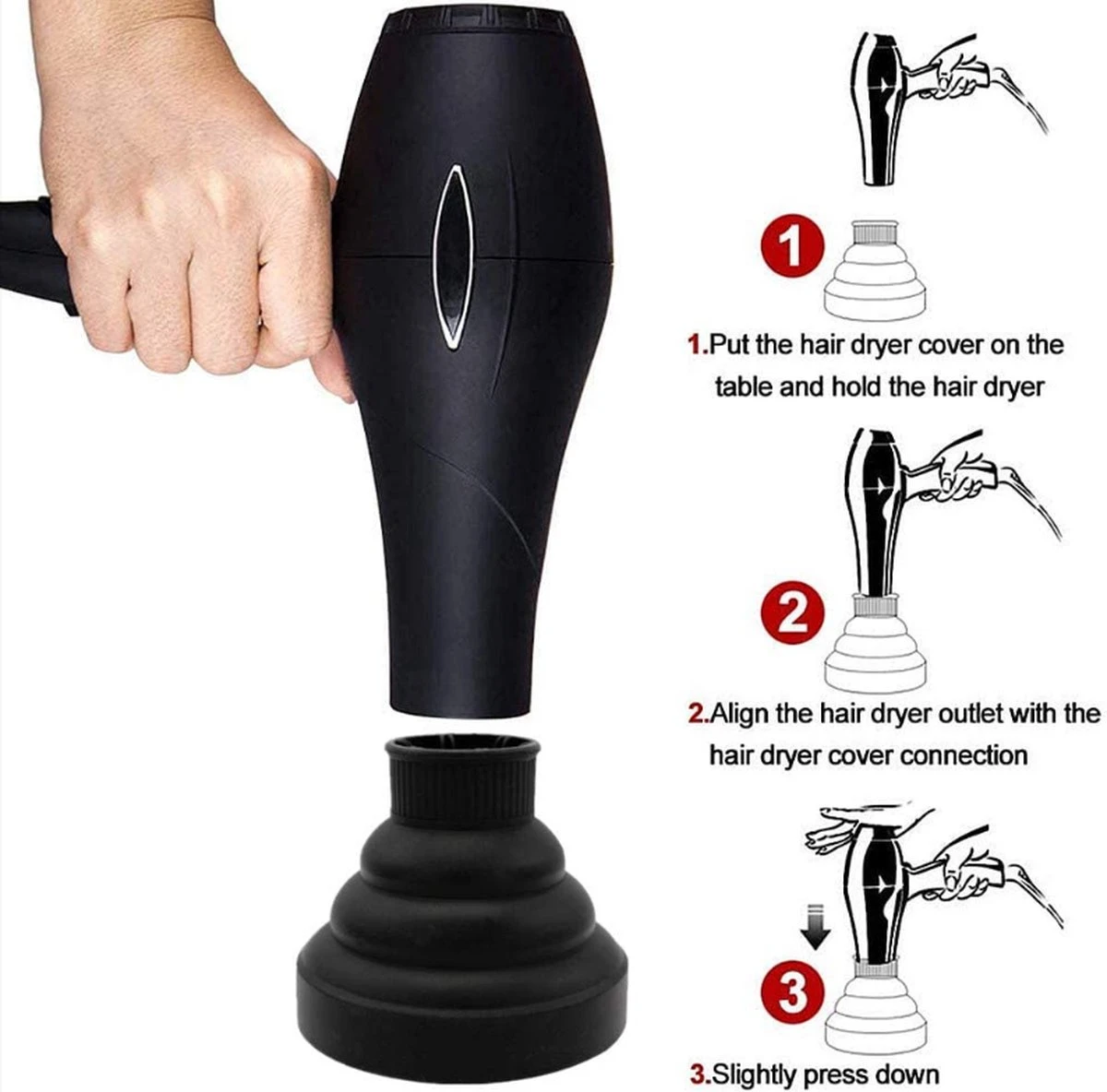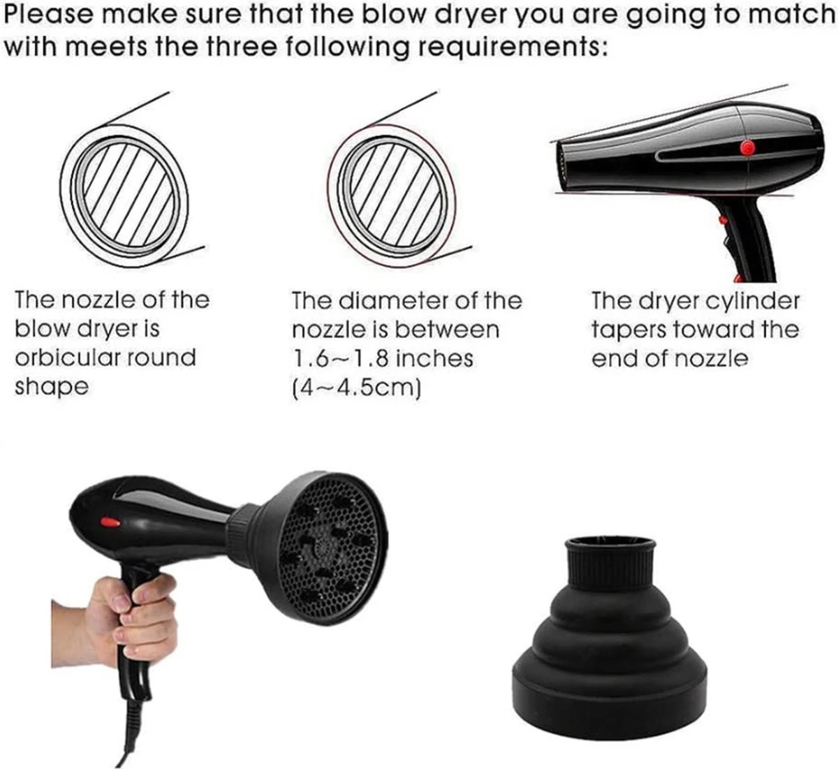 Veel gebruikt: De föhnhoes kan worden aangepast aan de meeste verschillende soorten haarblazers op de markt, deze met een uiteinde van tussen de 4 en 4,8 cm zijn.