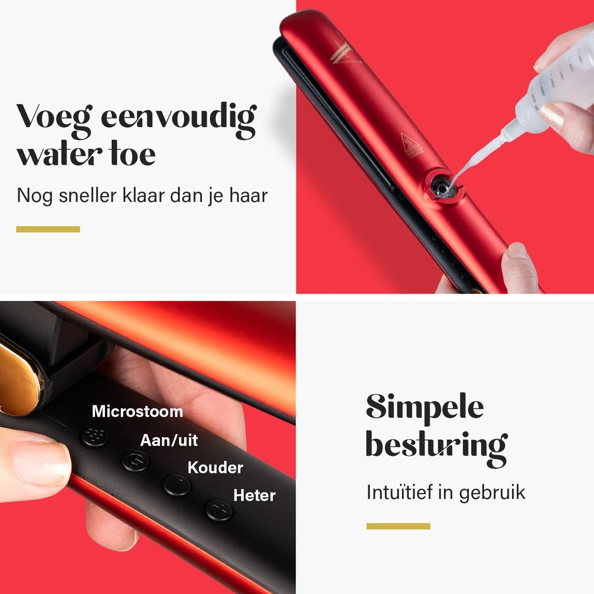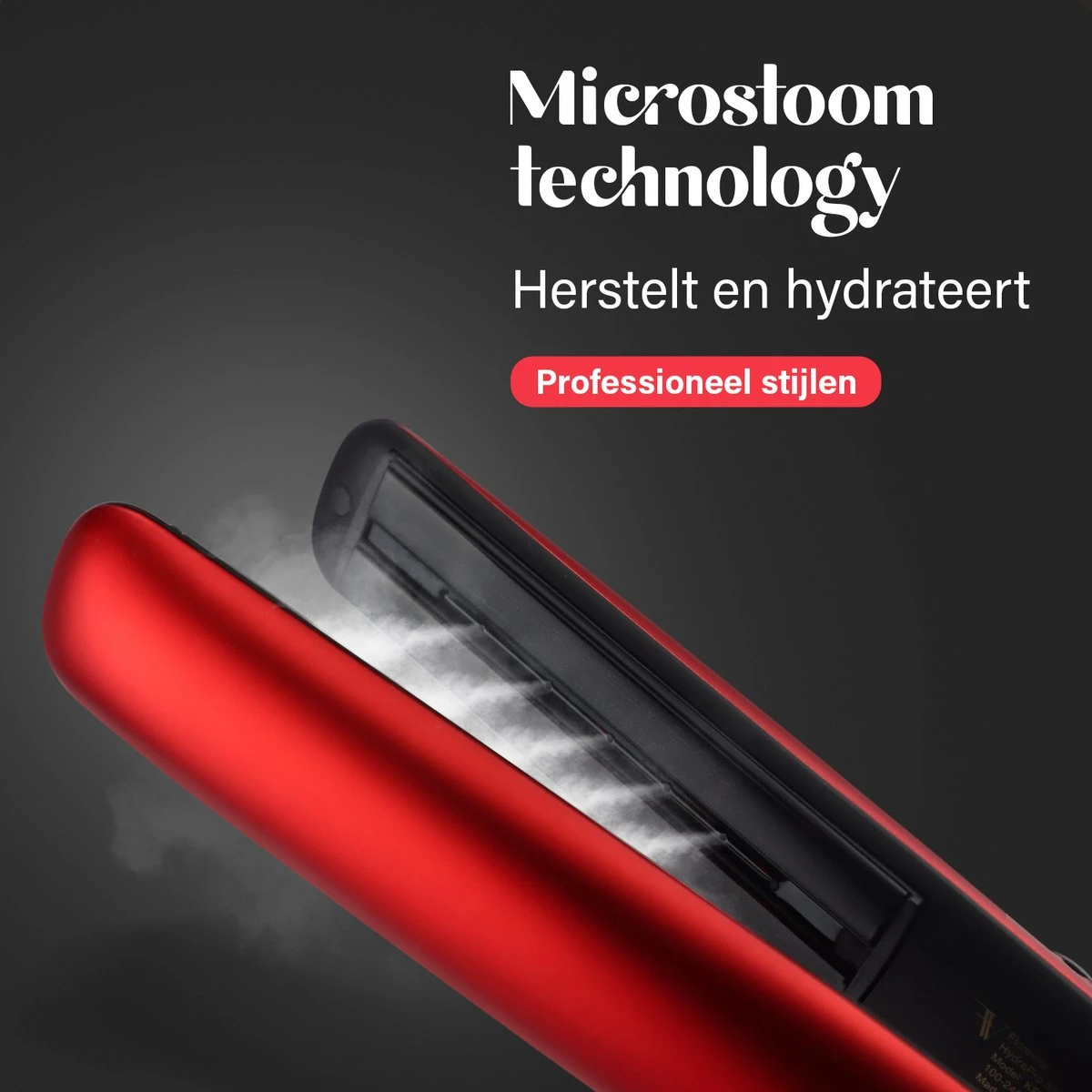 - Microstoom geeft een hydratatie boost tijdens het stijlen.